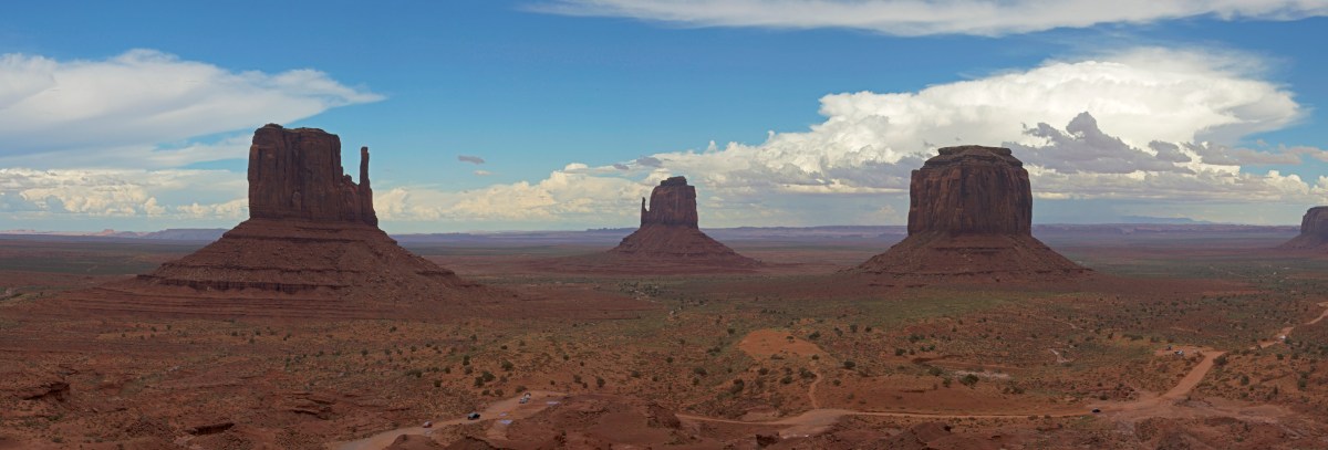 Mittens pano Published September 15, 2013 at 15346 × 5209 in Monument Valley, Arizona Pt. I ← Previous Next →