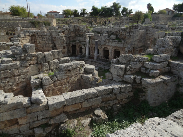 Today is the first day of our regular tour. We had an early start leaving from our hotel, Davine Palace Acropolis, and headed to Corinth. Paul, the apostle, met Priscilla and Aquilla here and spent about a year and a half building up the church at Corinth. The first stop was at the canal across the isthmus which is about 280 ft deep all at sea level. Ancient Corinth at the time of the Romans was one of largest cities at that time. We saw the columns for the temple of Apollo that had been restored. In the agora or market place you can see the remains of shops and work places including one with an intact stone arch. The original Bema is still intact where St. Paul was brought before the Roman Gallio as told in Acts 18. It was quite inspiring. They have also found pieces of the marble road that goes from coast to coast. We also drove to the top of the Acropolis on high mountain used as a fortification. Most of the existing walls and buildings date to mid first century and. Were built by the Venetians. The it was on to the cruise ship.