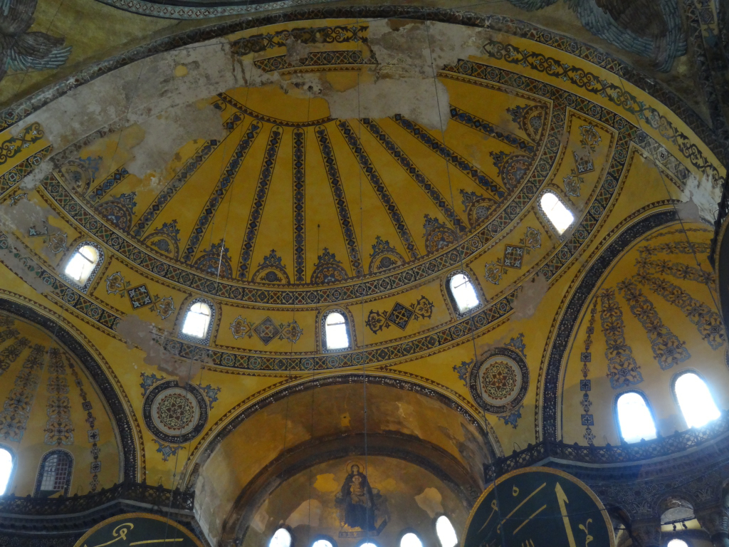 This morning we docked on the European side of Istanbul formally known as Constantinople. This is one of the oldest great cities of the world, formally a part of the Roman empire, capital of the Byzantine Empire. We first saw the Hagia Sophia, one of the largest orthodox cathedral with a very expansive dome. It became a mosque durning the Ottoman Turk control and is now a museum. Some of the Christian frescos are being restored aft being plastered over when it was a mosque. We we next able to go into the Blue Mosque between prayer periods. It is called blue because of the blue tiles on the inside. I was unable to capture the vastness, scale, and beauty of either one of these in photos. After lunch we had a short visit to the Topkapi Palace, the royal residence of the Ottoman sultans, now a museum. The exhibit rooms are rather dark. Lastly we had an hour for shopping in the Grand Bazaar, one of the largest markets in the world with 61 covered streets and 3-5,000 shops. You could easily get lost in there which we almost did, even staying on a main street.
