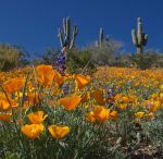 We had some well timed rains in December and January which have brought out the wild flowers this spring. I especially liked to find masses of Mexican Poppies that cover the hillsides. The best place that this happens is east of Globe at Peridot Mesa on the Apache Indian Reservation (you need a $10 permit to stop there). Another place we found poppies in abundance was at Picchio Peak south of Casa Grande. Various other isolated flowers were found in the desert on our 4 wheel drive trips. Finally a visit to the Phoenix Desert Botanical Garden is really popular at this time of year.