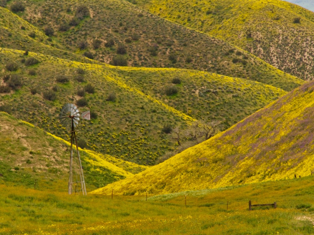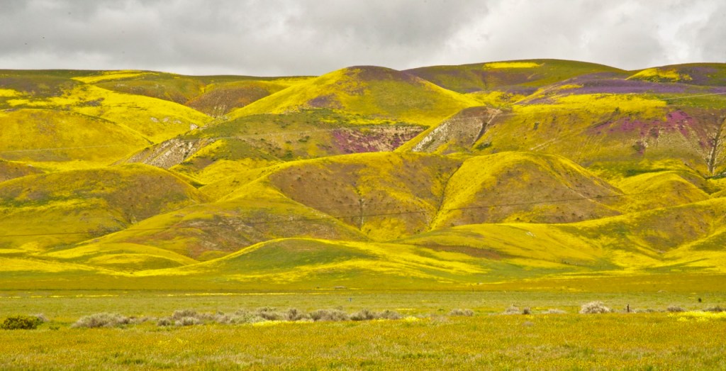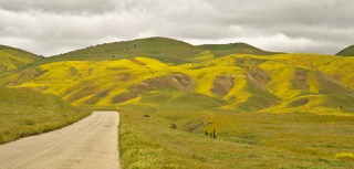 As we make the final approach on Route 58 to the Carrizo Plain, the hills are covered with yellow Common Gold Field flowers that look like yellow daisies, but are really in the sunflower family.