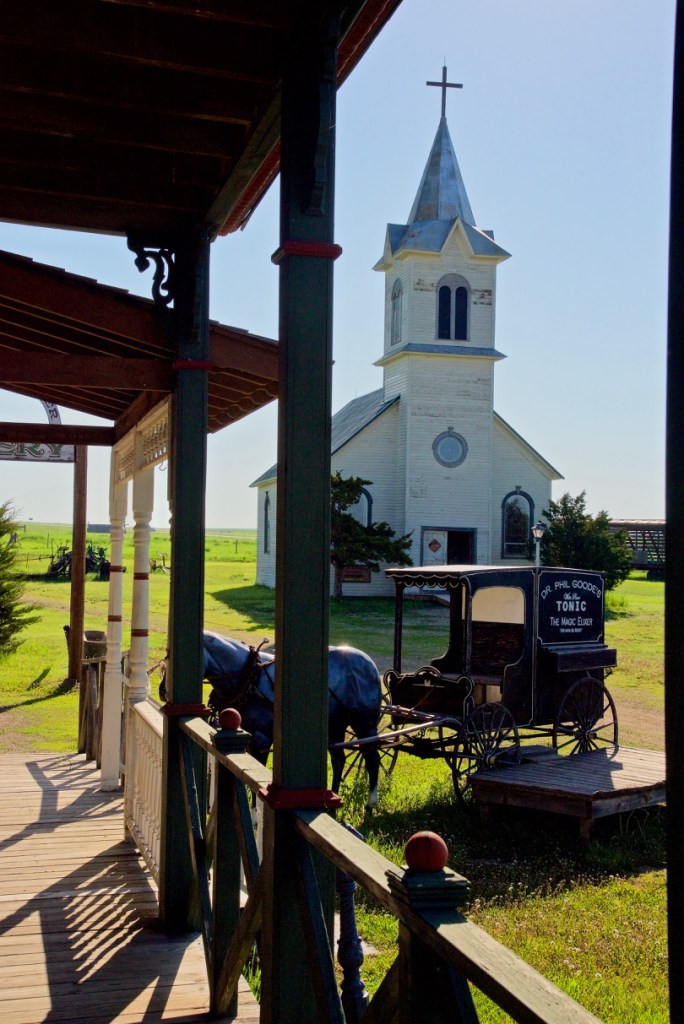 Near Belvidere, SD, we stayed at an RV Camp that was only a half mile from a recreated 1880s town.  The buildings are all authentic and have been moved from various locations.  It featured a round barn that had many artifacts including all of the props from the “Dancing with Wolves” movie.