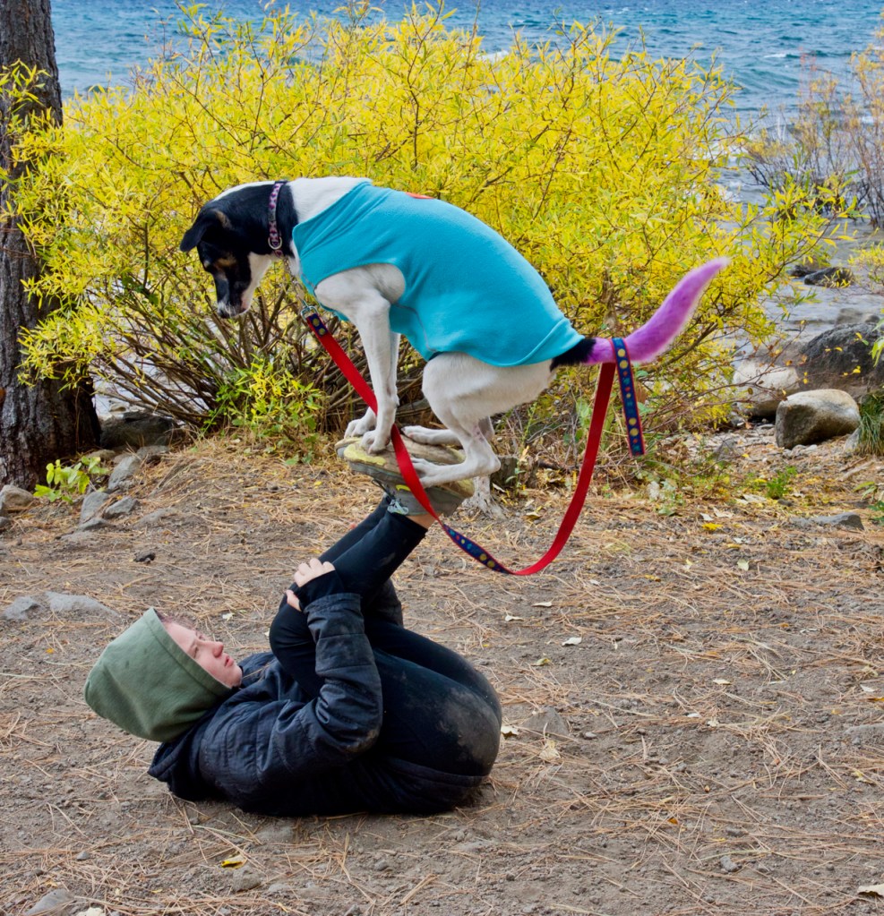 At one stop along the lake we found a couple of girls playing with their dog.