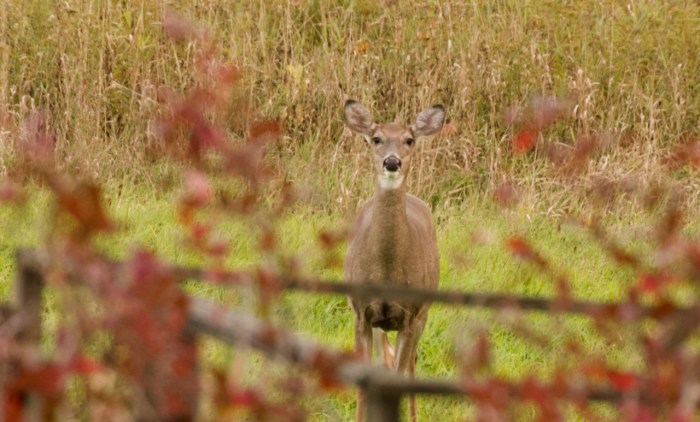 The following photos are from Ron and Thelma’s house set back to the edge of the woods and on the corner of farmland. The building is Ron’s wood working shop. In the late afternoon, a family of deer came out to graze.