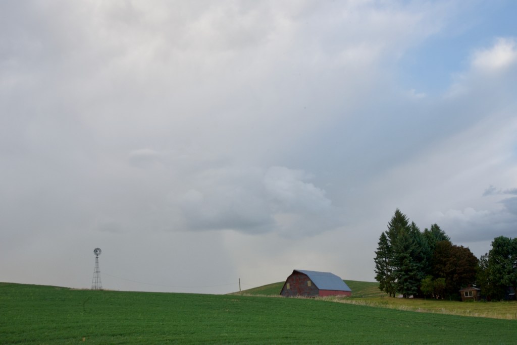 We traveled north from Palouse on route 27 to Garfield and then the Garfield Farmington Road toward Farmington. The granaries were in Garfield. More barns were found along the way one with an old windmill. We came across more fields of canola and the storm clouds were starting to form.