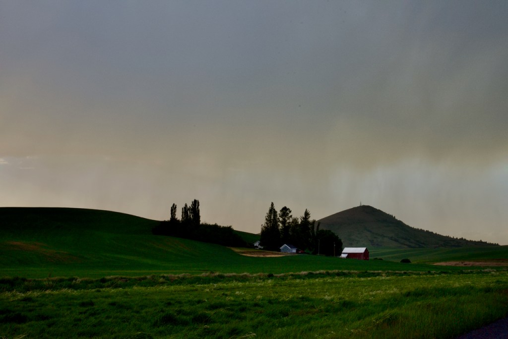 It was time to head toward Steptoe Butte which we had visited the day before in the afternoon. The sunset was supposed to be the location of the premier photo shots. Initially as the storm was approaching the lighting ranged from rather dark to some openings in the clouds to give the low light giving the shadows.
