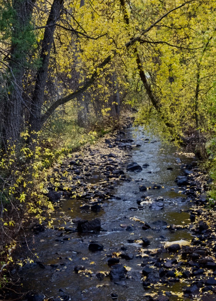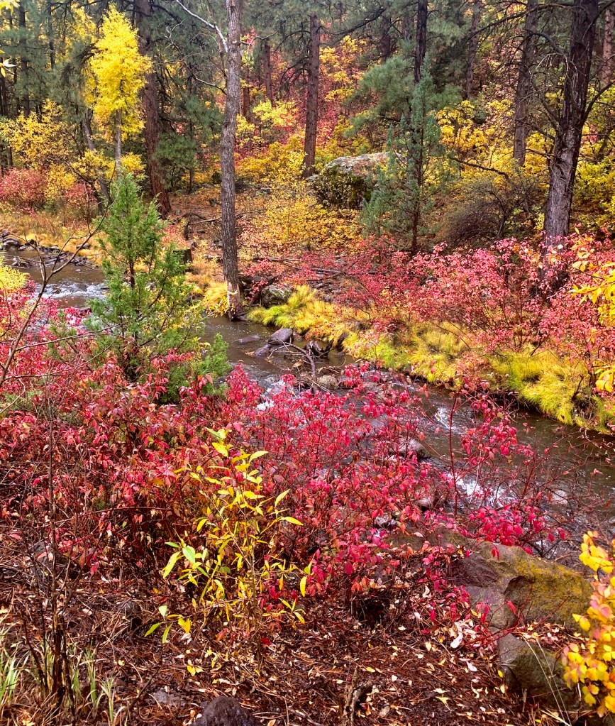 I was able to stop quite a bit in pull outs so that I could get some nice photos along the creek in the canyon. I don’t know the name of the shrubs, but they are brilliant red in contrast to the yellow aspens and other bushes.