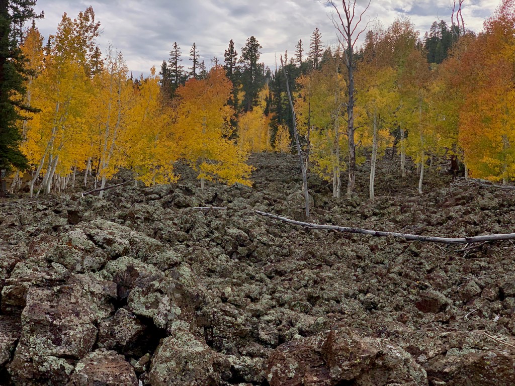 In this same area there were numerous places where the aspens were growing out of an ancient lava field. And finally a sunset at Panguitch RV park.
