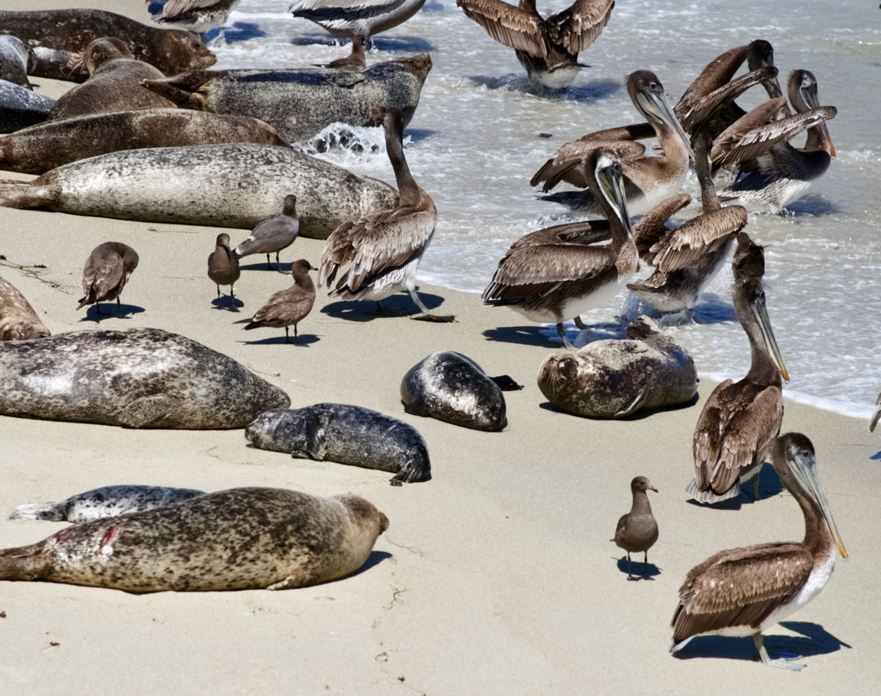 A little further up the beach there were brown pelicans and more seals.