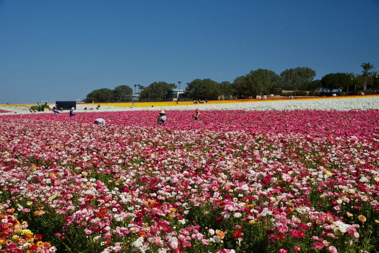 We spend all of the next day at the Carlsbad, CA Flower Fields. They have quite an operation growing Ranunculus flowers in nearly 50 acres of fields (for about 60 Years) on the side of a hill with many other flowers and retail nursery on the grounds.