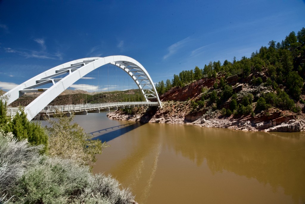 This part of the trip starts in Vernal, Utah which is close to Flaming Gorge on the Green River. The river has been dammed to form the Flaming Gorge Reservoir. The famous expedition of John Wesley Powell started in what is now Green River, Wyoming and traversed through the Grand Canyon. “Powell and his party of nine others departed Green River Station (now the town of Green River, Wyoming) on May 24, 1869, two weeks after the Golden Spike had been laid at Promontory, Utah, completing the Transcontinental Railroad. The boats were laden with supplies to last 10 months and they took several scientific instruments including sextants, chronometers, thermometers, compasses, and barometers (to measure the altitude of the river and surrounding terrain). They would endure numerous hardships along the way including negotiating hundreds of rapids, the loss of two boats with much of their supplies and scientific instruments, surviving near drownings, food spoilage and near starvation, and even outrunning a flash flood. One member of the crew would depart the expedition near Vernal, Utah, having had enough adventure, and three others left near the journey’s end thinking an impending rapid too dangerous—they were never seen again.”
