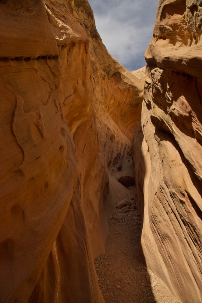 Very close to the entrance was a road that took us to Little Wild Horse Canyon. It was supposed to be about a 3/4 mile hike which turned into about 2.5 miles round trip. I left Joann in the van and set out, but was gone almost 2 hours. Worried about leaving her that long, I about did myself in walking very fast on the way back. But the end result was worth it as I found an uncrowded slot canyon. For those that do not know, a slot canyon has been carved by fast flowing water and could be still dangerous if a flash flood occurred. Near Page Arizona the slot canyons are totally crowded and over run with tourists from all over the world because of social media photos.