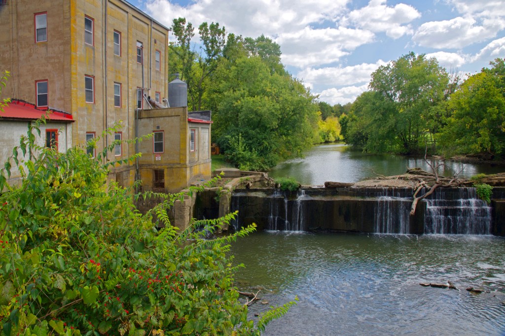 The next photo stop was south of Springfield, OH at the Clifton Springs Grist Mill which also had a restaurant where we met a college friend. I thought it was interesting that the mill race overflow came out as a waterfall under the building. At Christmas time they string up about a million lights.
