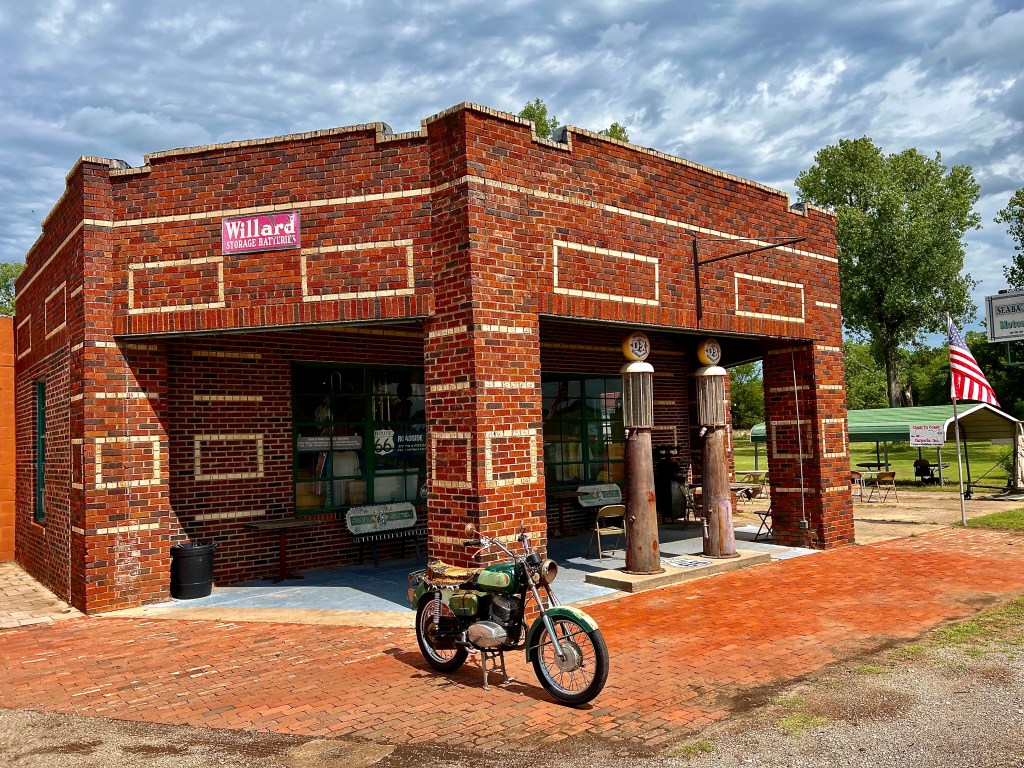 So enough of the troubles. We stopped at several places on Route 66 for a few unusual attractions. The first place was at a restored 1929 Phillips 66 station in McLean, TX. In Arcadia, OK we found the round barn and the tallest coke bottle at a gas station. In Warwick, there is a motorcycle museum.