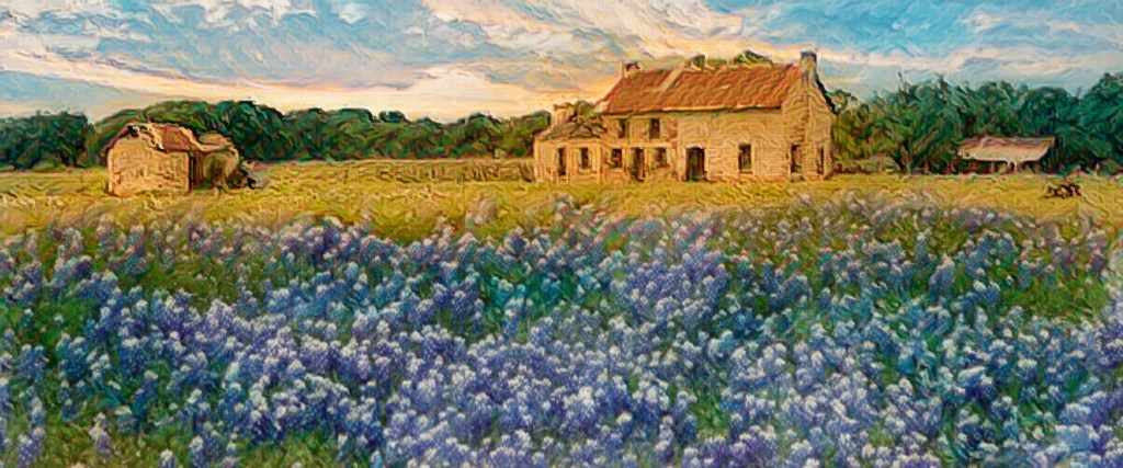 Next are a couple of creative intrepretations of the scene. In the first, is the original, the second I added the bluebonnets into the foreground and added a sky and the third is a little more wild rendition.