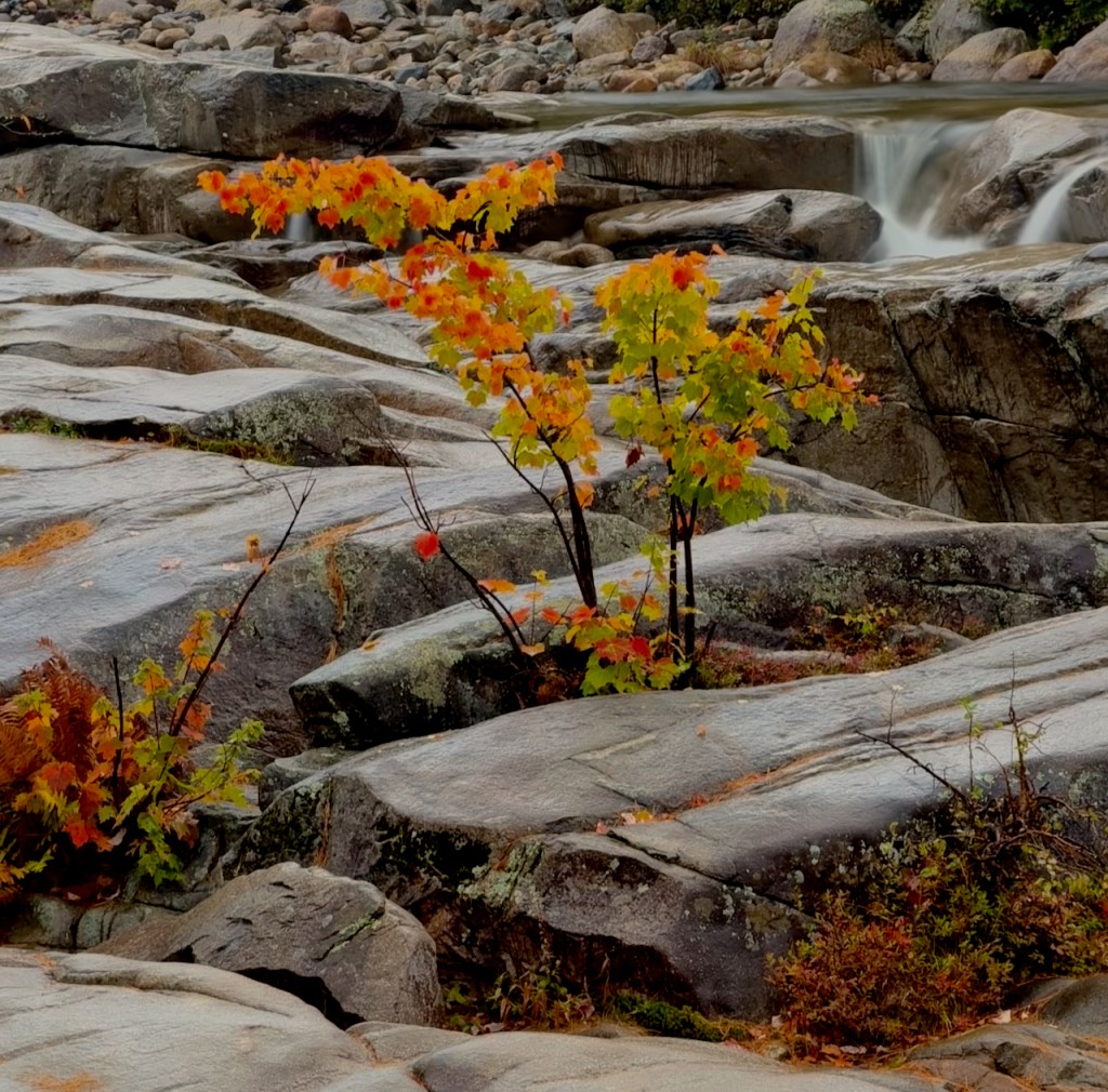 I liked the red and yellow trees side by side. On the way back on the pathway I noticed the little tree struggling to survive amongst the boulders.