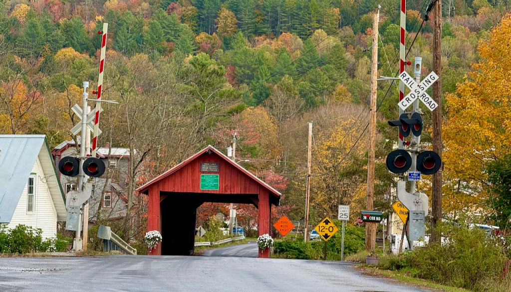 To round out the day, I drove to Northfield, VT on Route 12 to find a series of covered bridges. The first bridge is called the Station Covered bridge built in 1872 and carries Cox Brook Road across the Dog River. This bridge is also called the Northfield Falls Covered Bridge.