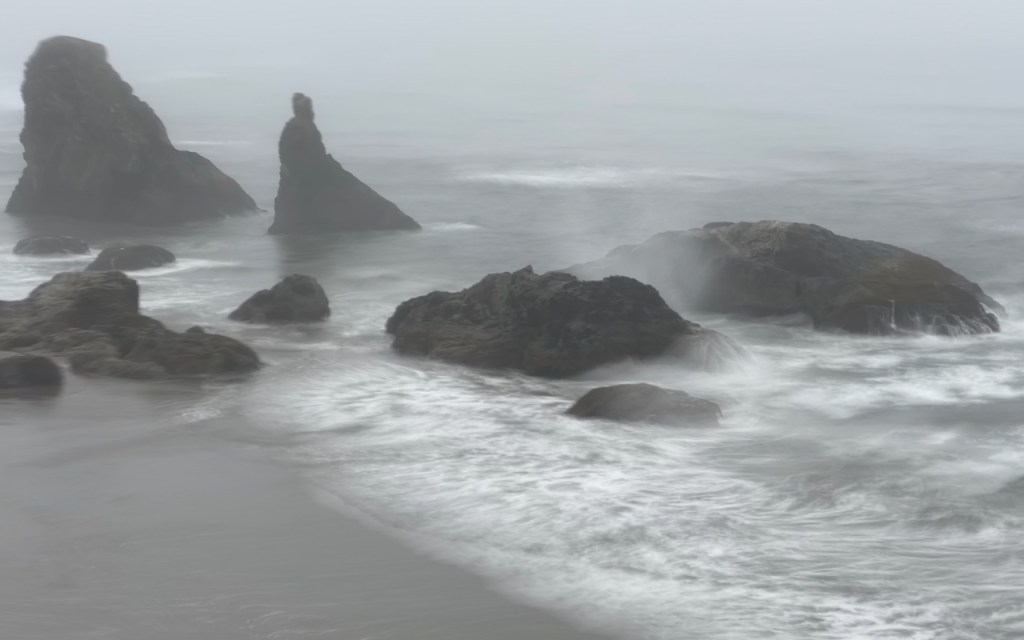 I specifically stayed in Bandon so I would get a sunset there. But lo and behold even before I left the RV park I knew it was not going to happen. I had fog instead of a sunset!!