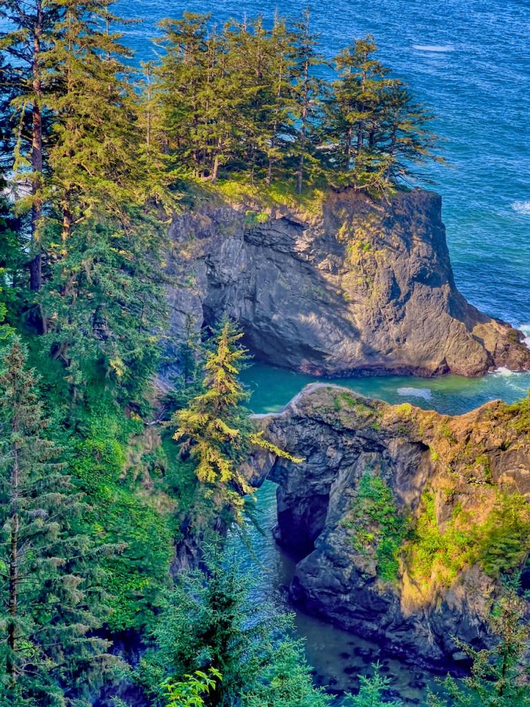 Near Samual Boardman State park there are two natural bridges visible from the bluff. I wasn’t about to hike down there but did wait long enough for the sun to light them up.