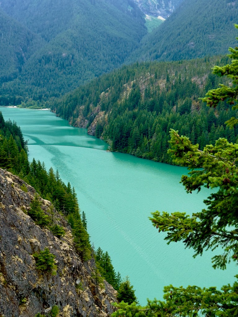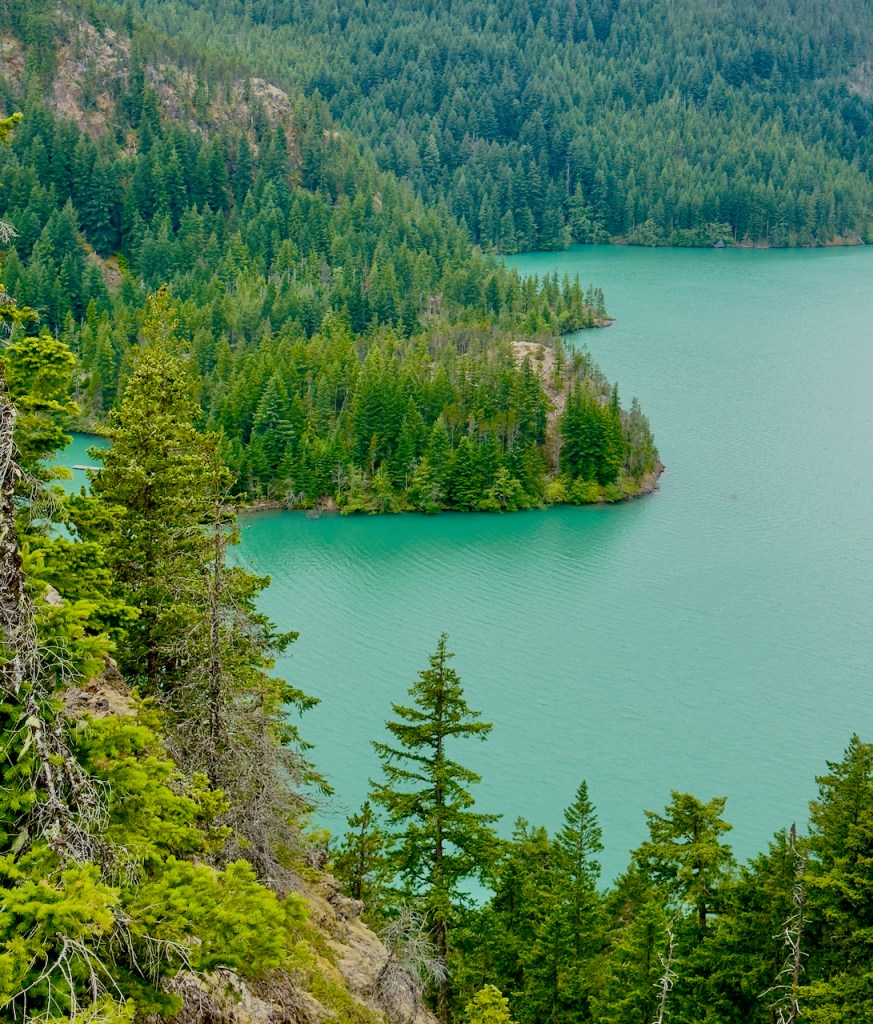 As I continued a main stop was at Ross Lake and Diablo Lake formed by dams. The water color is naturally turquoise from the fine silt in the glacier melt waters. There are over 300 glaciers in the North Cascades complex of mountains. The first photo is Ross Lake.