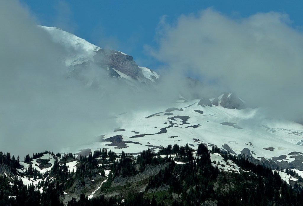 The drive around Mount Rainier gave many opportunities for sighting the mountain itself which was in and out of the clouds.
