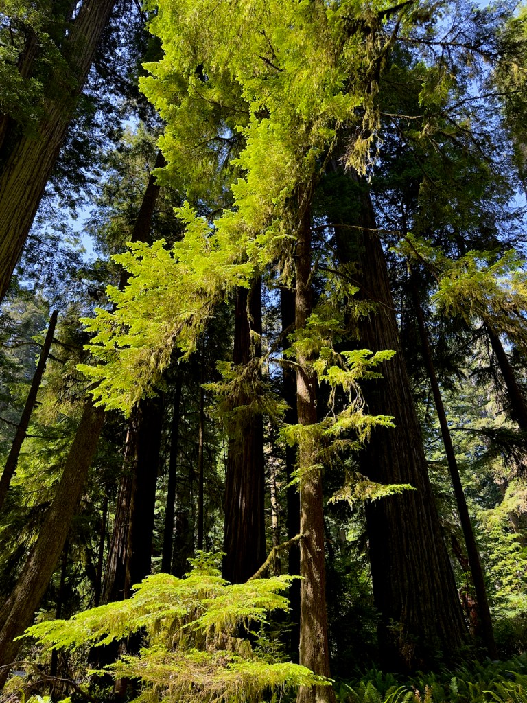 In California I stopped for a short hike in the redwood forest. You cannot image how tall they are and I could barely see the tops in a couple of places. The diameters are equally very large.