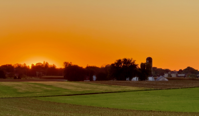 During dinner I hurried outside to catch the setting sun and was able to also photograph two Amish buggies. See how enclosed they are because they do not like having their pictures taken.