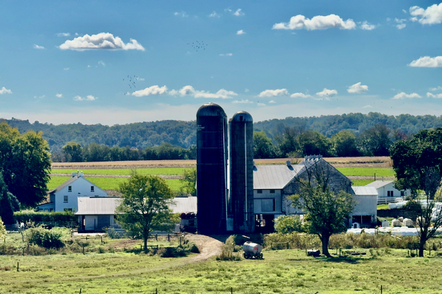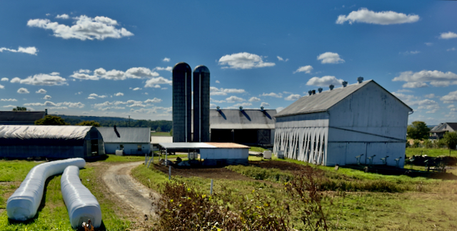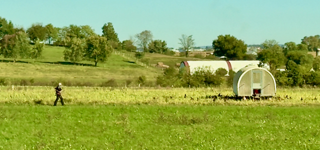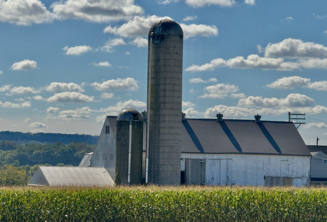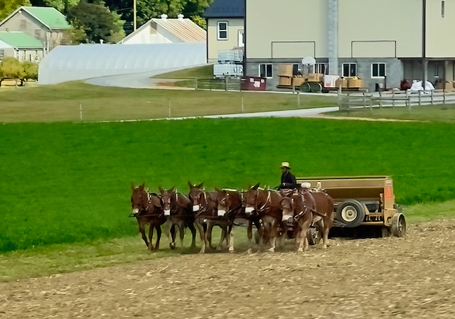 We saw many Amish farms with their iconic silos. For those that do not know, the silos hold chopped up green cornstalks which are blown into the top. The resulting silage ferments and keeps from spoiling by the lack of air deep in the silo. This is the feed for the cows in the winter time.