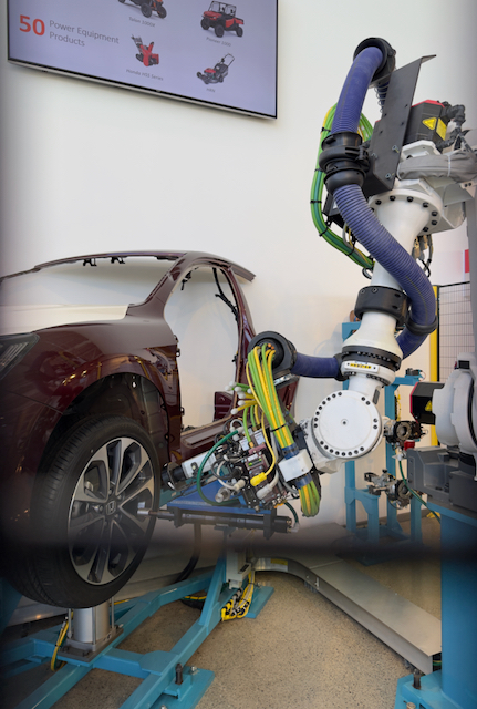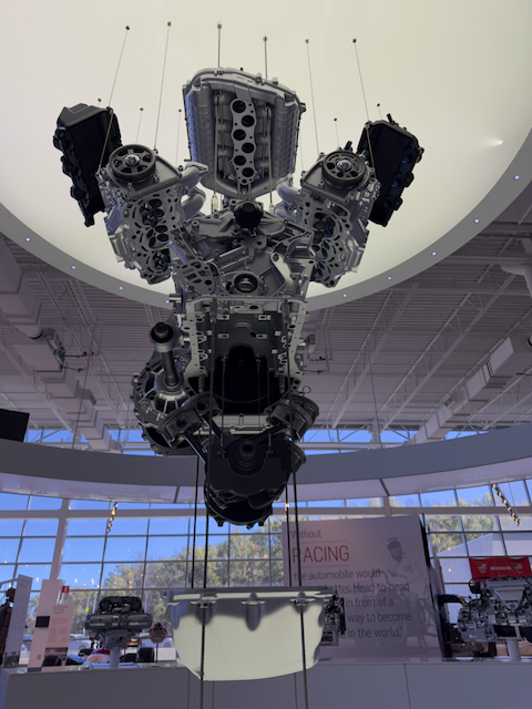 On the way home back to Arizona, I first stopped to visit friends in Delaware, OH. As we contemplated a fun day trip we ended up visiting the Honda Heritage Center in Marysville, OH. It was quite interesting as it chronicled Honda’s manufacturing in America. They had examples of many motorcycles and classic cars. The second photo is part of a robot demonstration on how they assemble a car. The third photo is a cutaway of an engine. The fourth is an engine with “exploded” views of the engine parts.