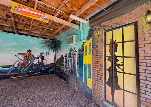 Almost every time I’m on I-40, I divert to Route 66 in Tucumcari, NM and stop at the Blue Swallow Motel which is still in operation. The second mural photo is from one of the garages attached to each room of the motel. I bet you never heard of that before. There are also quite a few other vintage motels in the town as well.