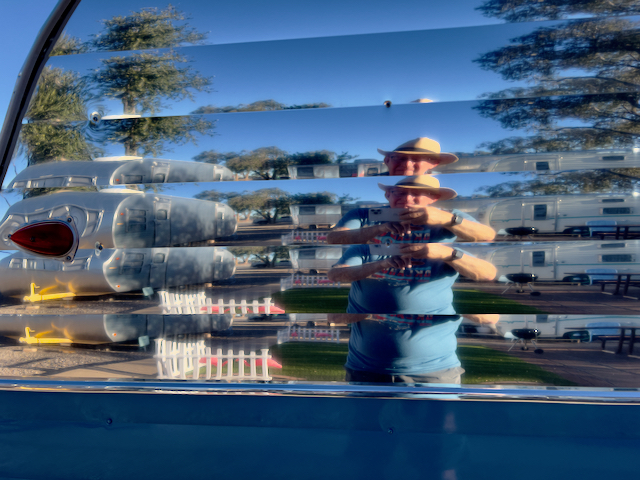 I have stopped many times at the Enchanted Trails RV Park and Trading Post a little west of Albuquerque, NM. It has quite a number of vintage RV trailers and cars.