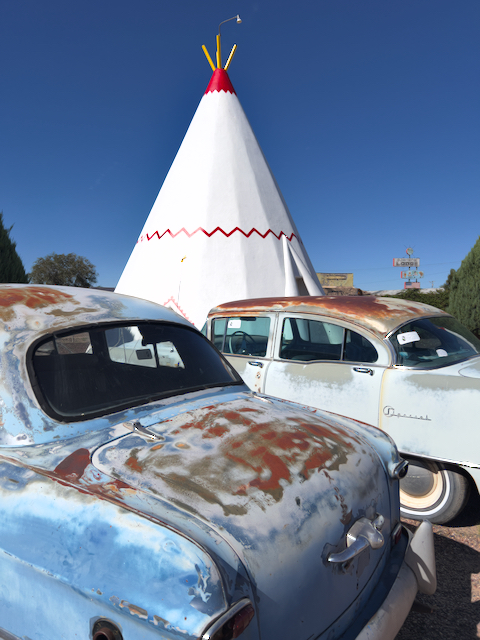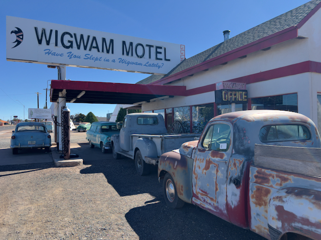 The final photo stop of the trip is at the Wigwam motel, also still in operation, in Holbrook, AZ just off I-40. You can spend the night in a tepee.
