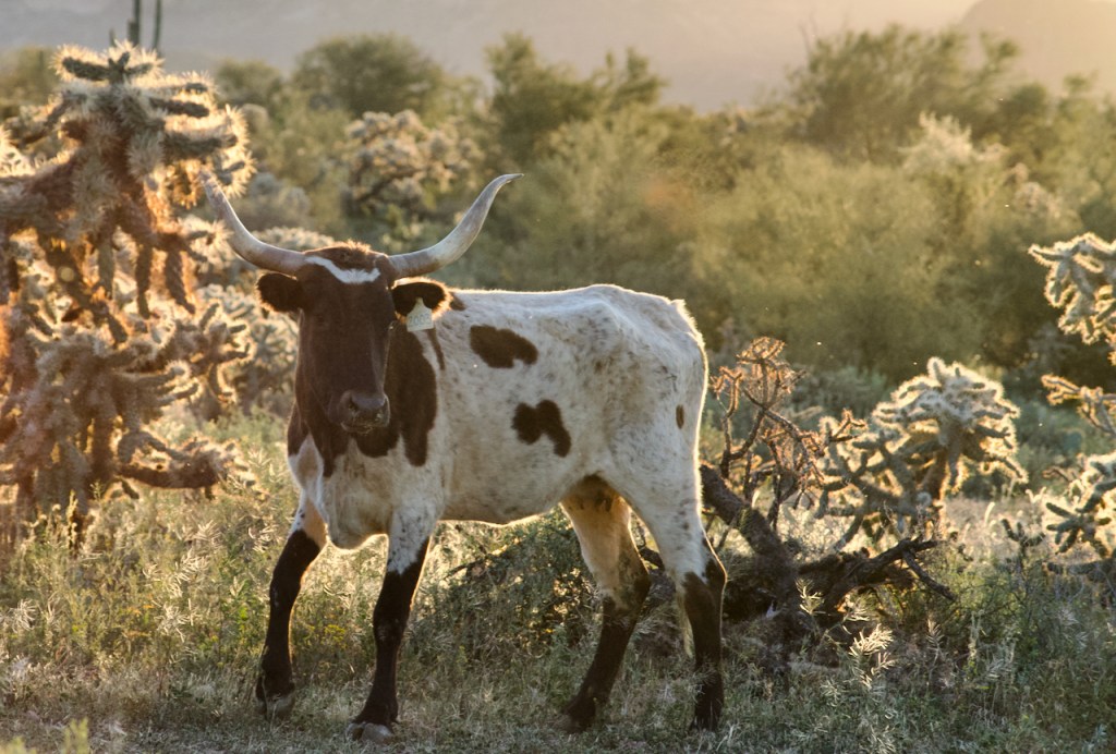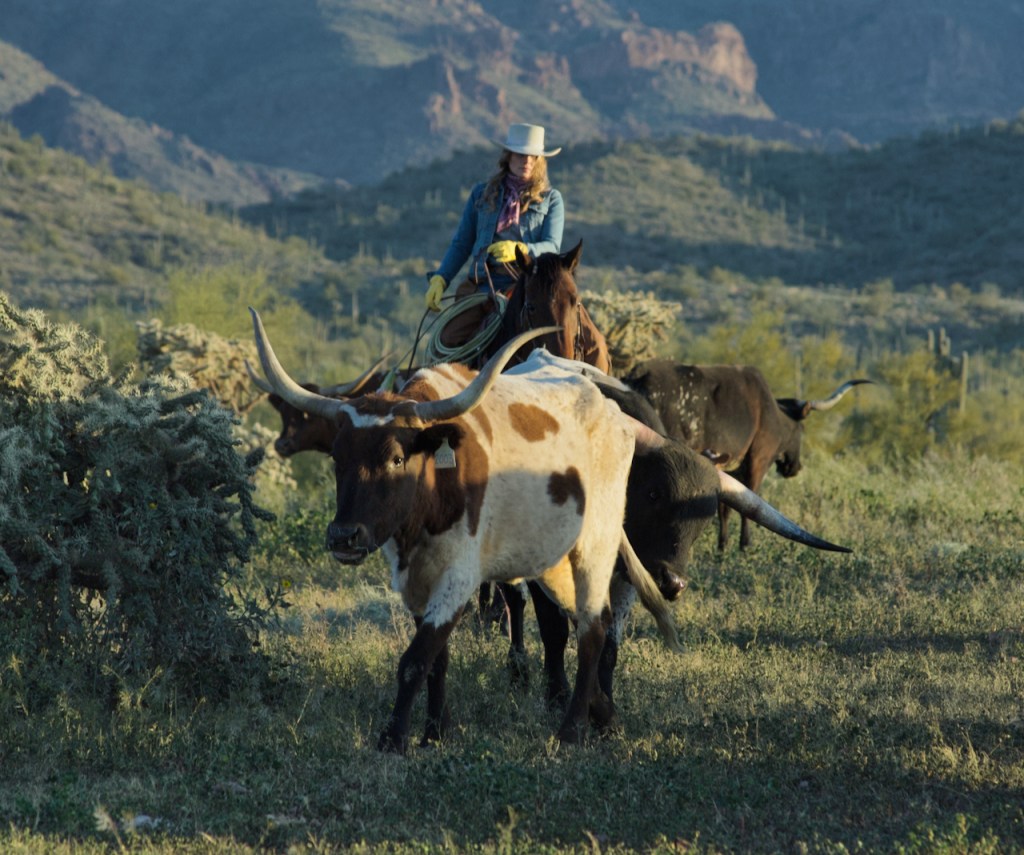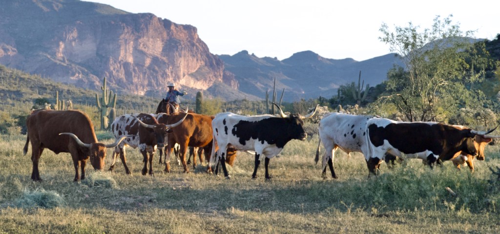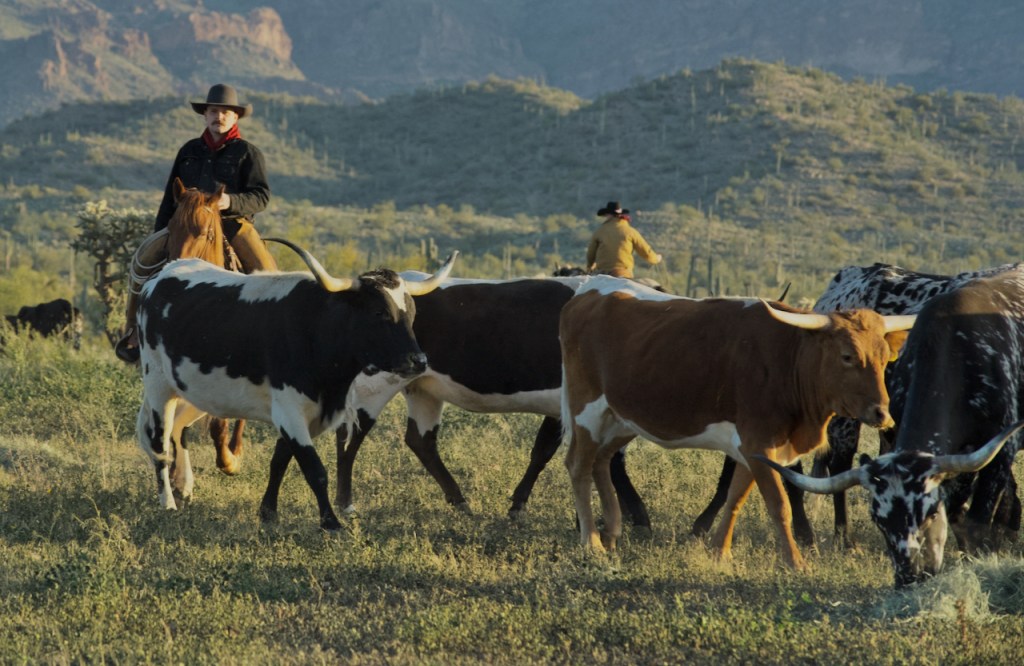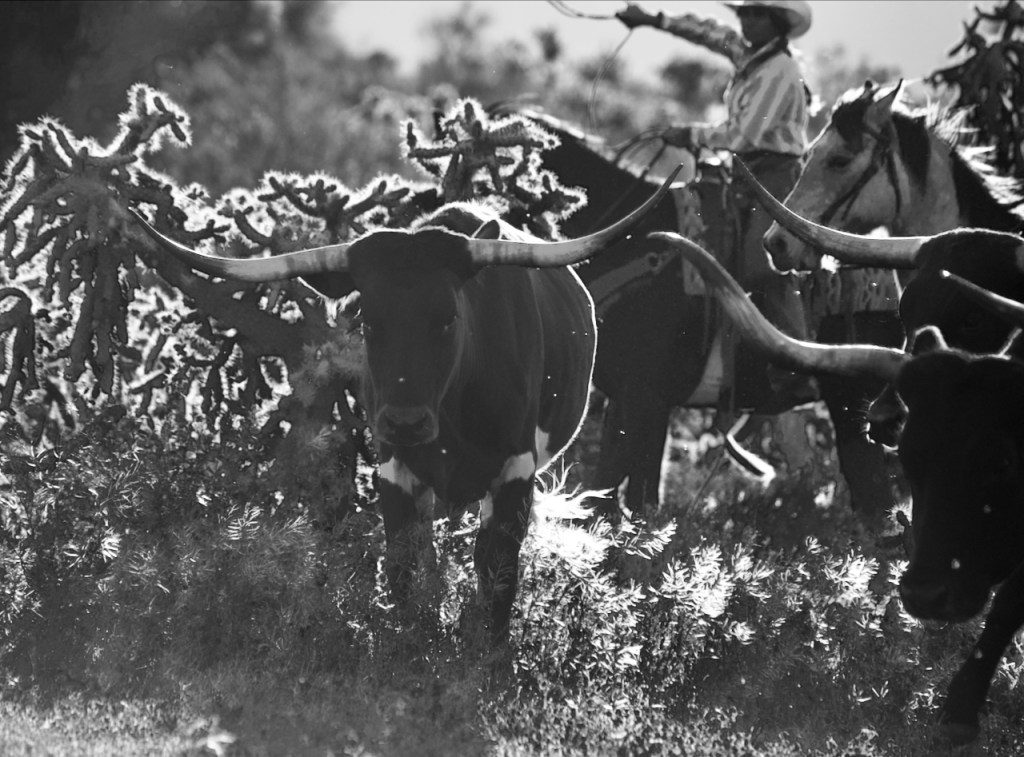 The cowboys and girls pushed the longhorn cattle in the desert in front of us. It was somewhat hard to get photos where they were not all bunched together.
