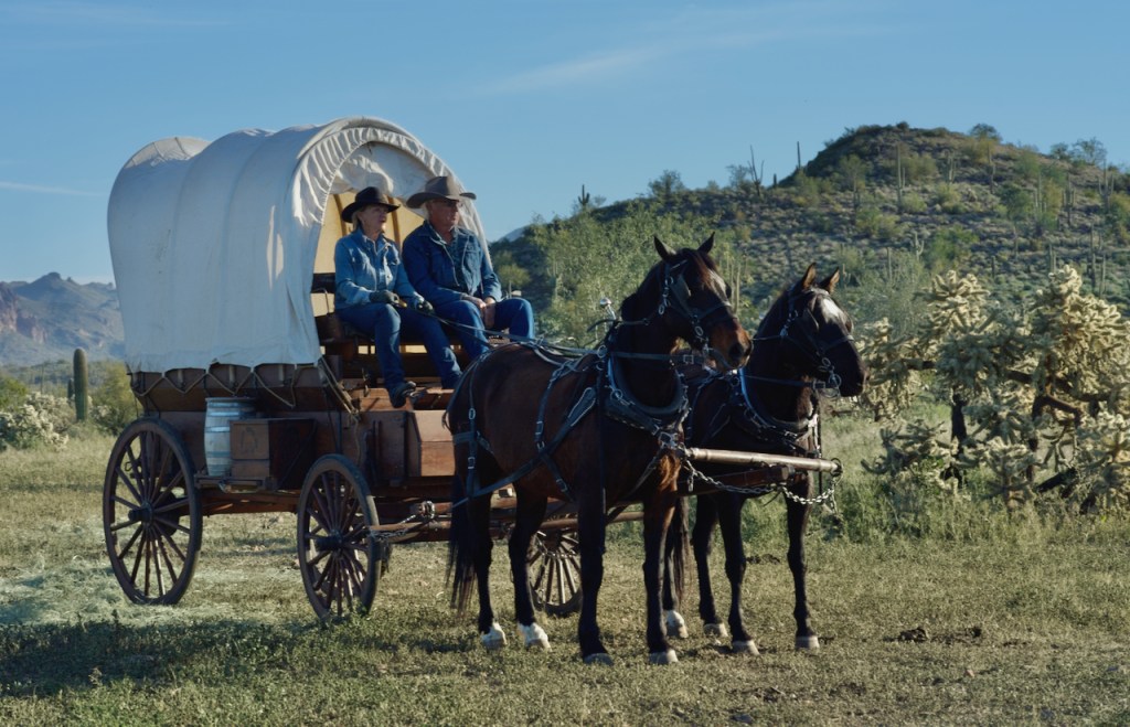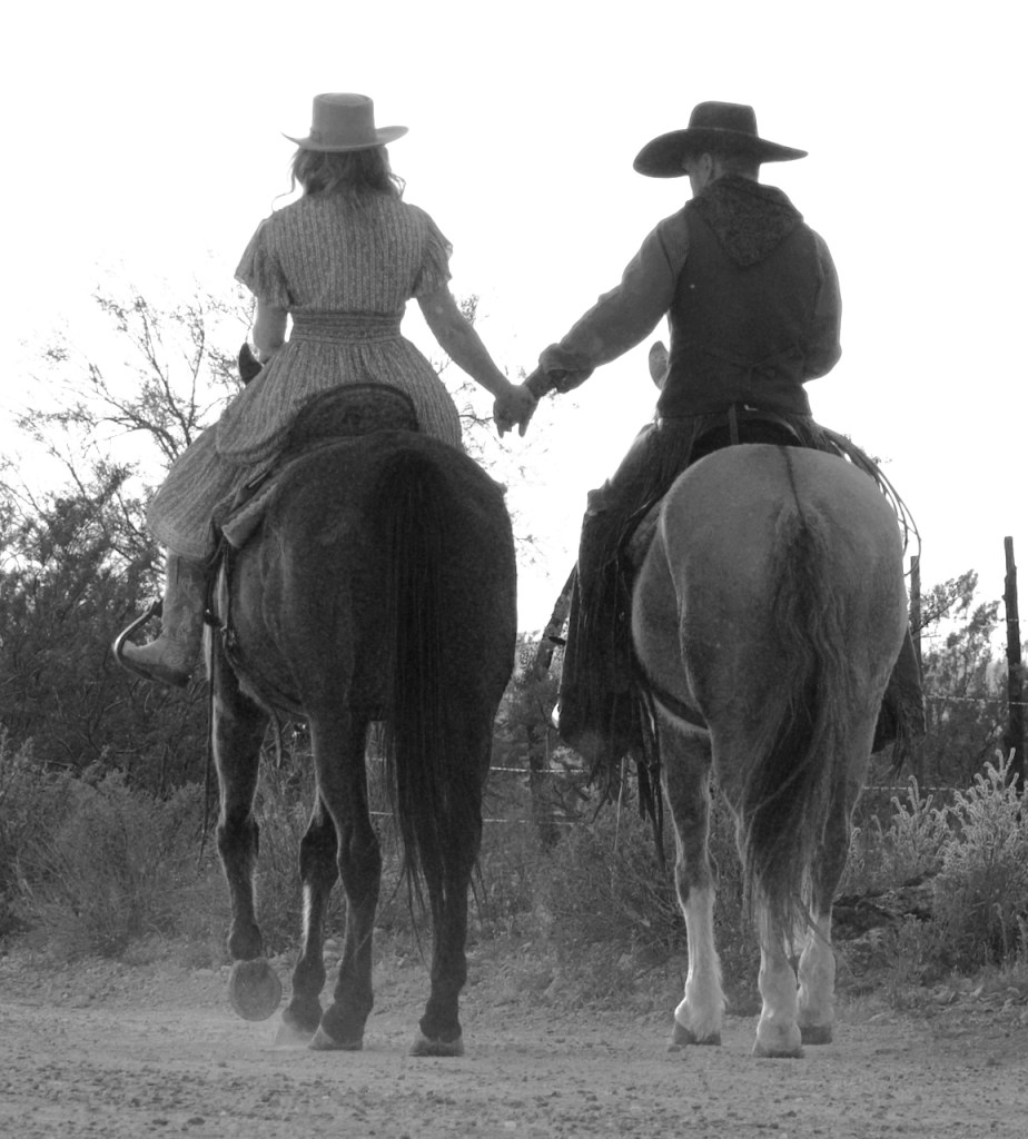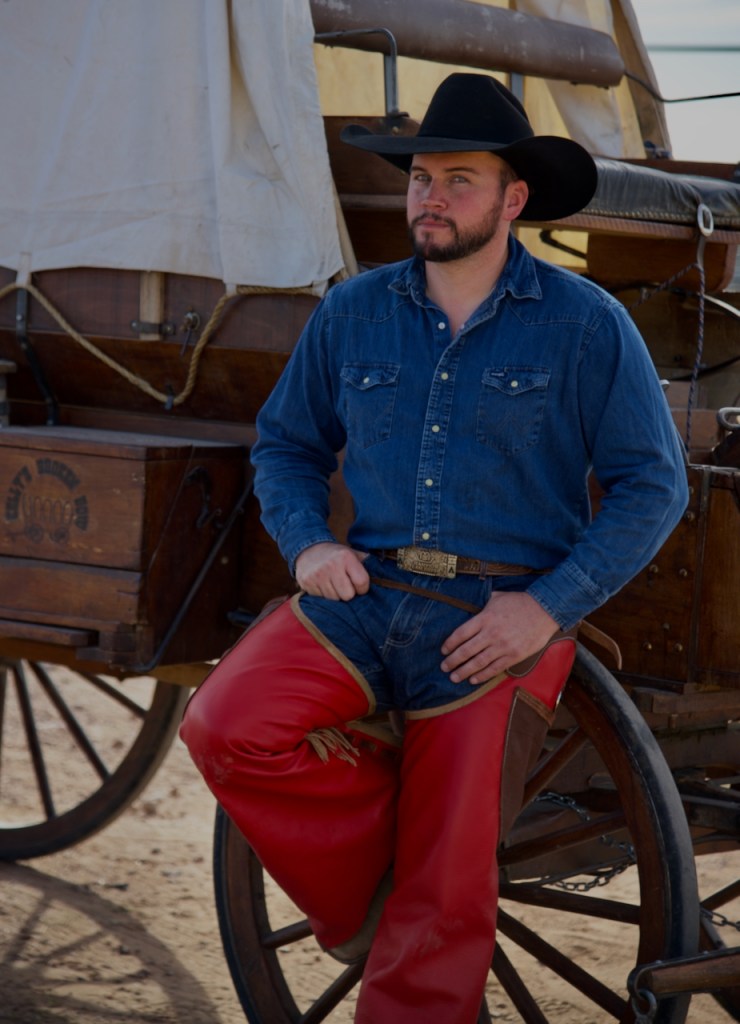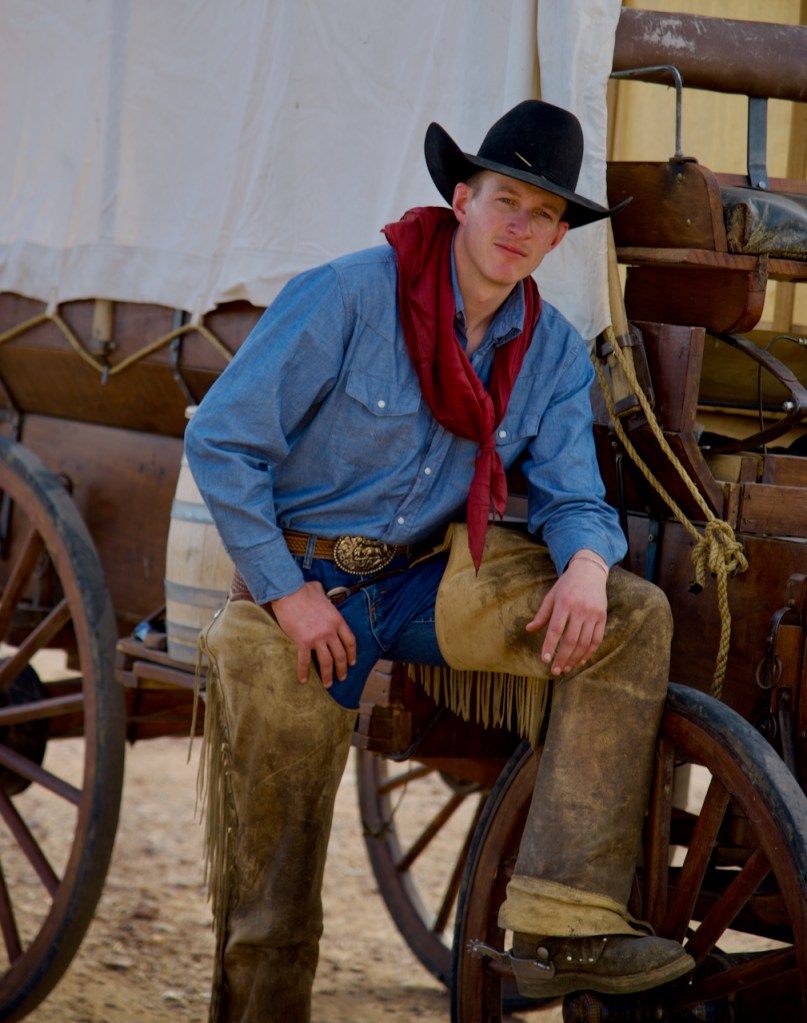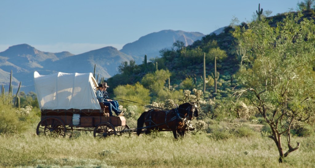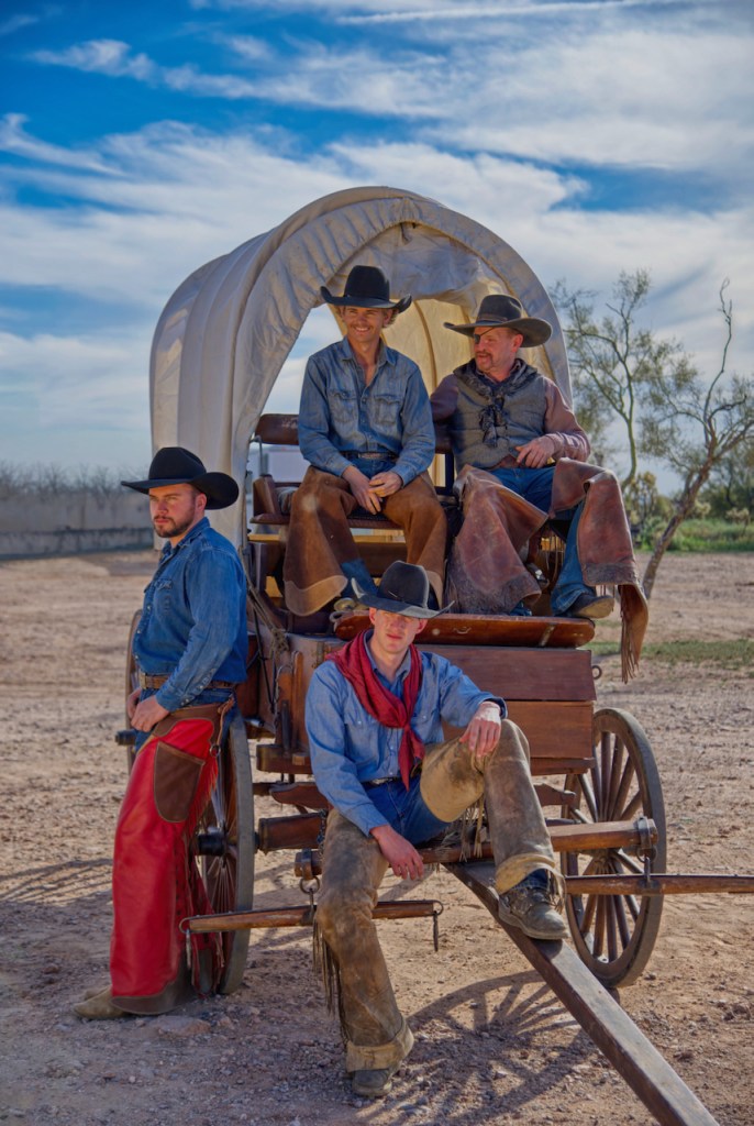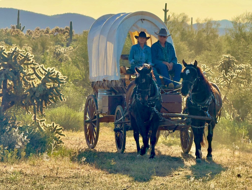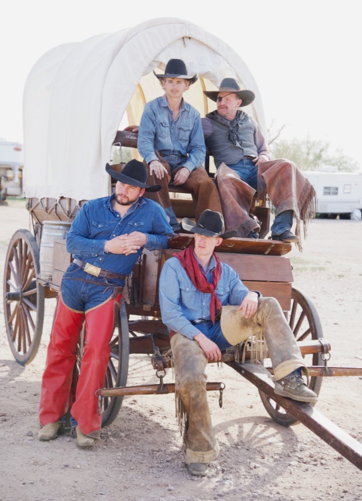 The covered wagon was built by the head cowboy, Duncan from Montana. He used the methods current in the 1800s. This other couple loaded it into a horse trailer and brought it to Arizona. They have over the years traveled 1600 miles in various covered wagon trail rides. It really added to the backgrounds in many photos.