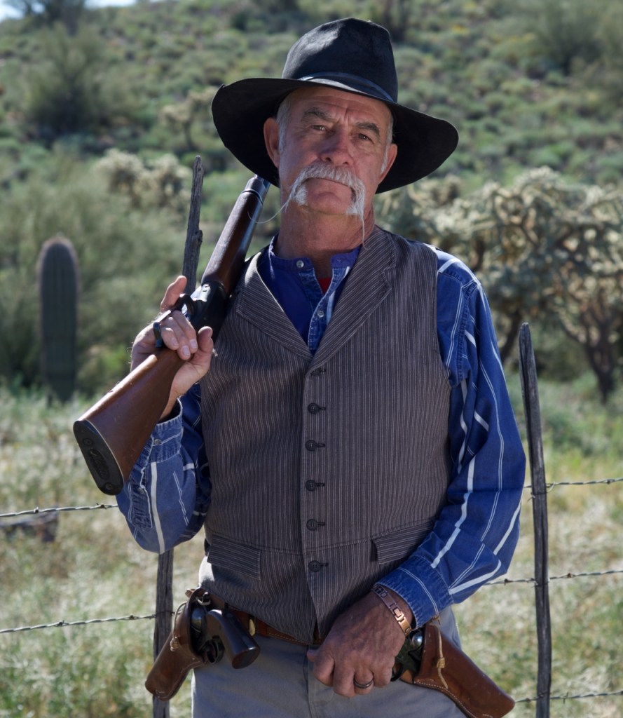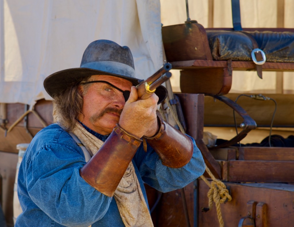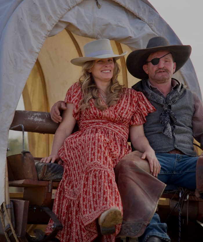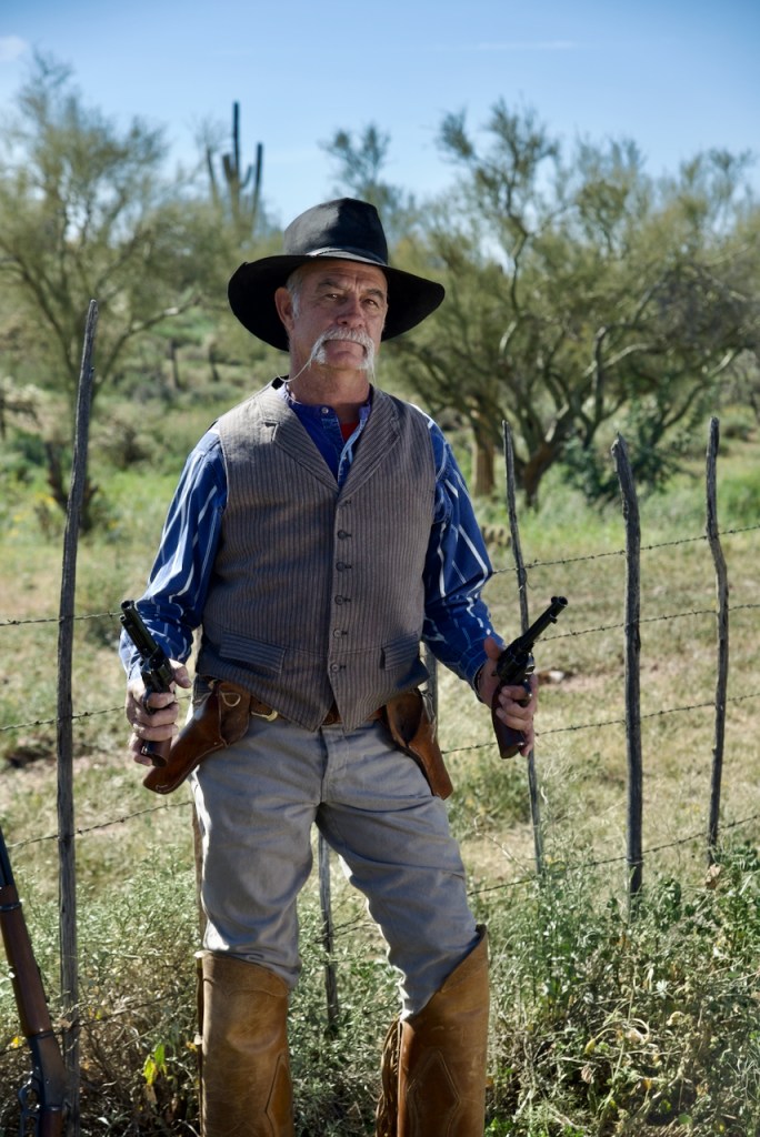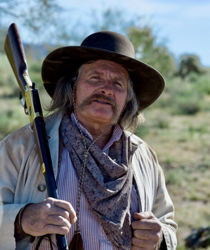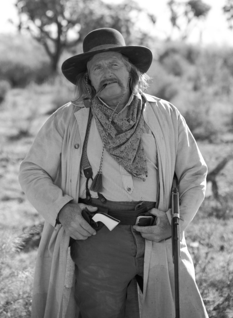 The photo below is Duncan and his wife Bonnie from Montana. Duncan is the head of the cowboy crew. They do these kinds of things for a living and have been in many movies, rodeos, and stuntmen. You can tell that Duncan has had a rough life because of the scars on his face and arms and the eye patch.