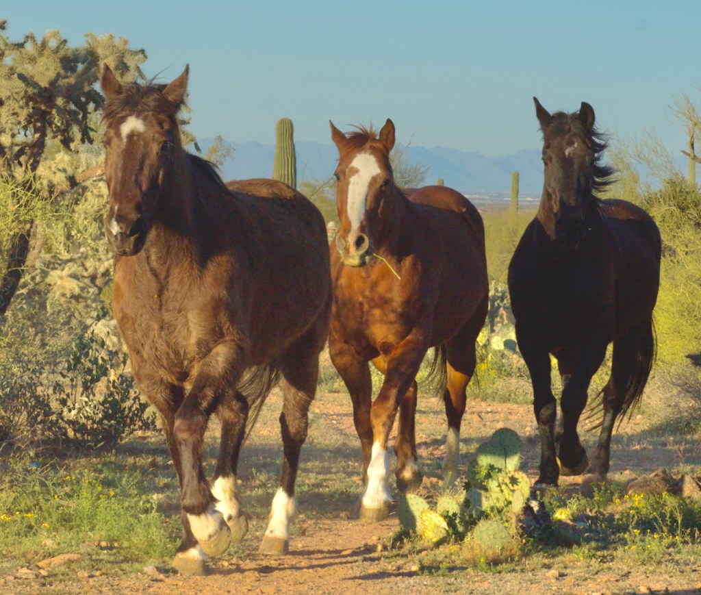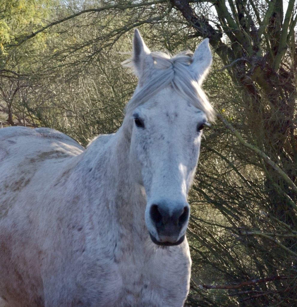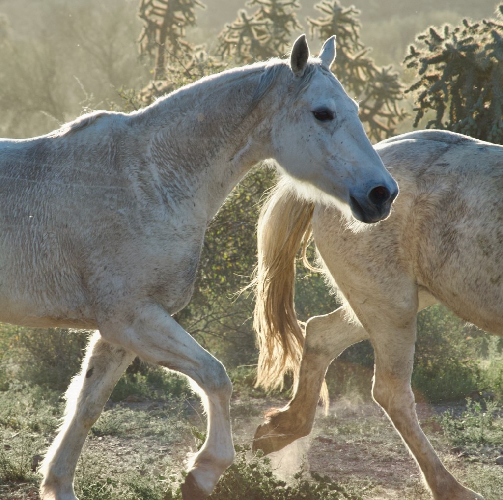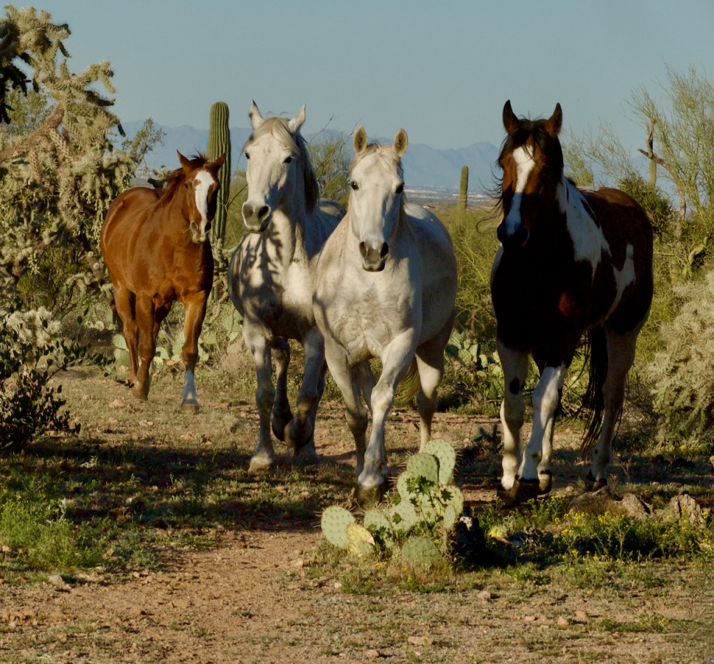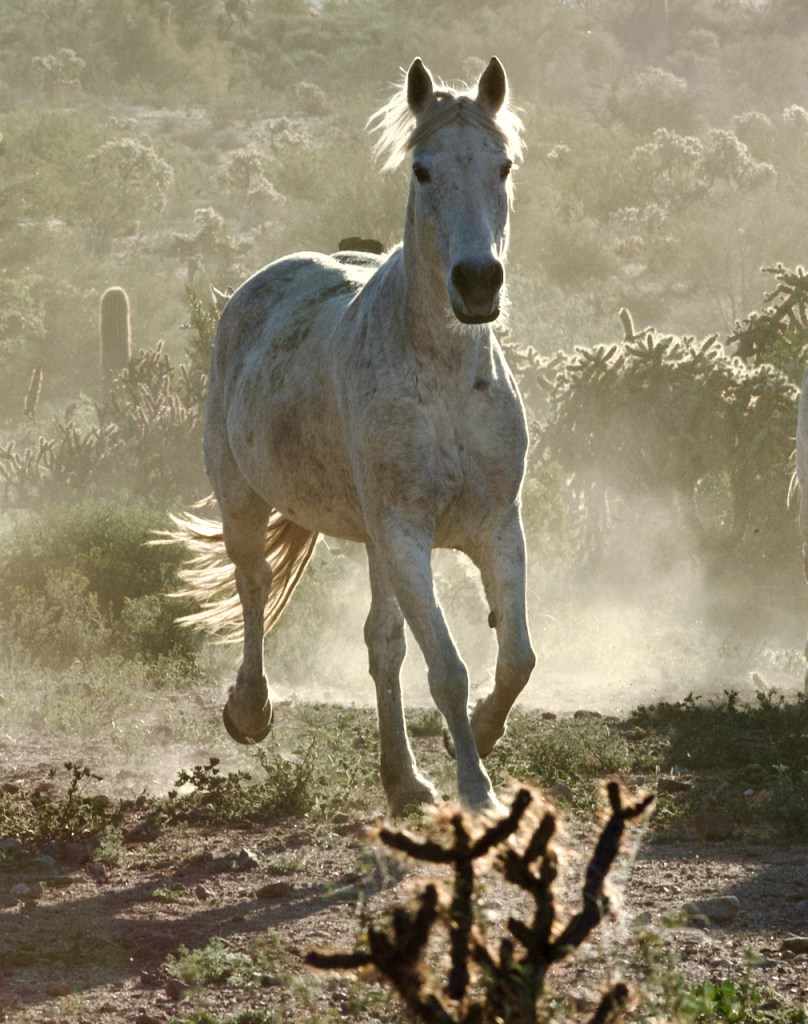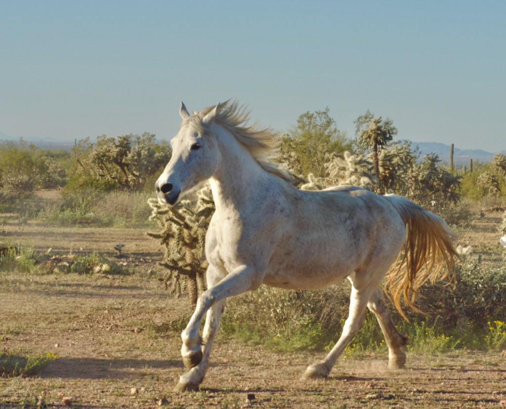 After a break, the cowboys and cowgirls herded the horses back and forth in a desert location. I especially liked the white horses.