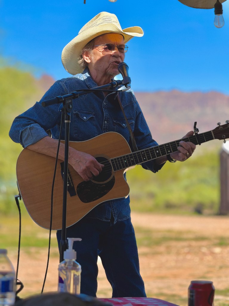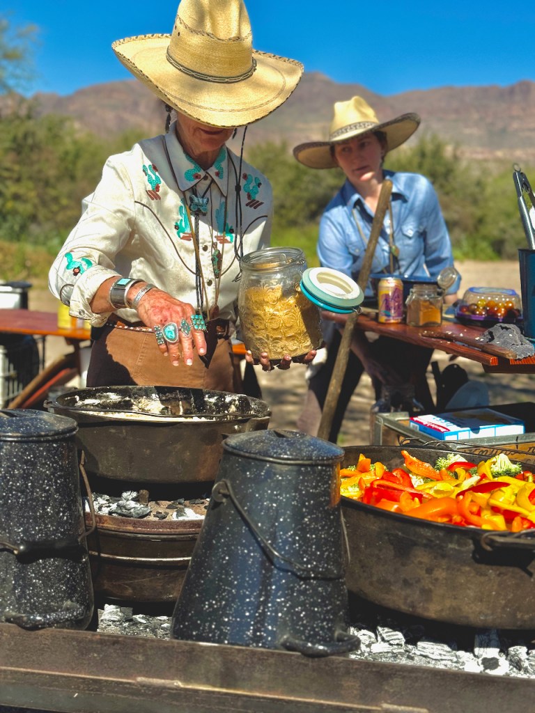 We finished the workshop with an authentic Chuckwagon dinner prepared as they did in the 1800s. The cook and her daughter have won various competitions with their meals. She made brisket, a vegetable medley, corn bread, and topped it off with a delicious peach cobbler. At the end we had a little cowboy music.