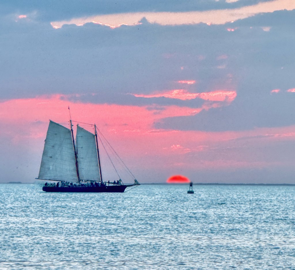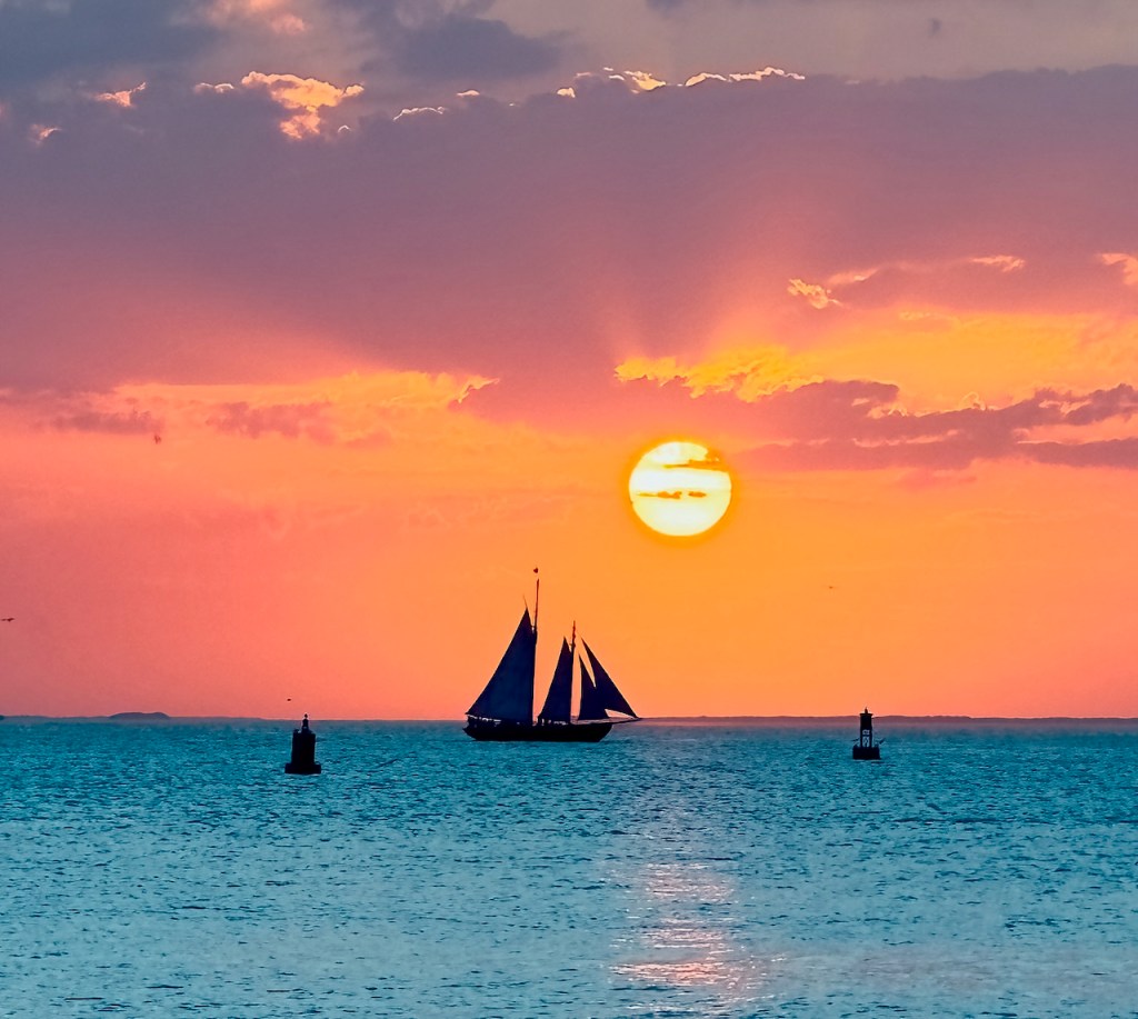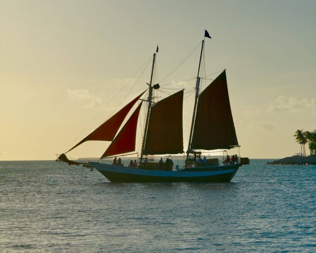 The final night I was again in Mallory Square to watch the sunset. The first ship is the Jolly Rover with it’s red sails the I sailed on earlier.