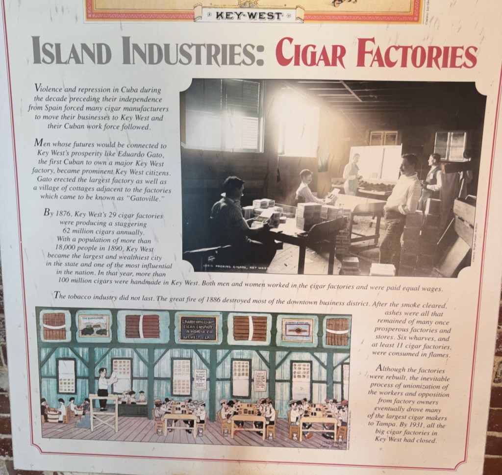 I think the following panel explains it the best. The cigar factories were one of the thriving industries that brought much wealth to Key West in the 1800’s.