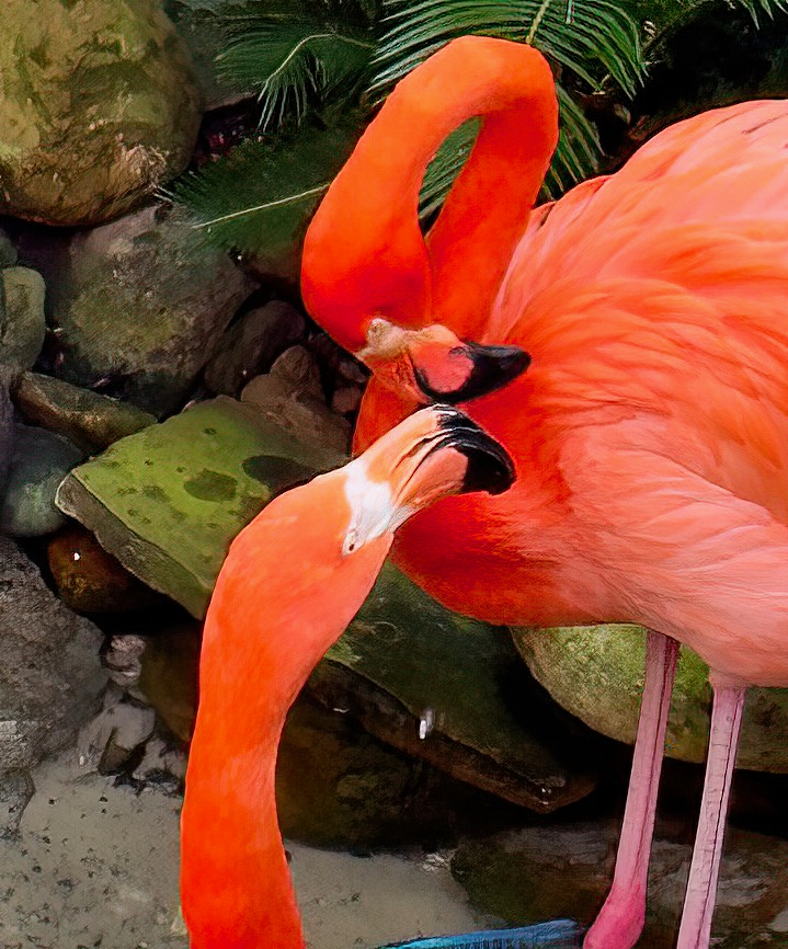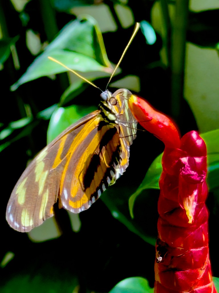 Next stop was the Butterfly and Nature Conservatory. There were many blue Morpho butterflies flying about. When they land they fold their wings and the outside wings are brown which is not so pretty. There were also a number of small birds and two flamingos.