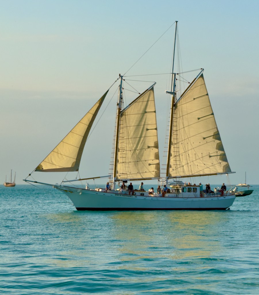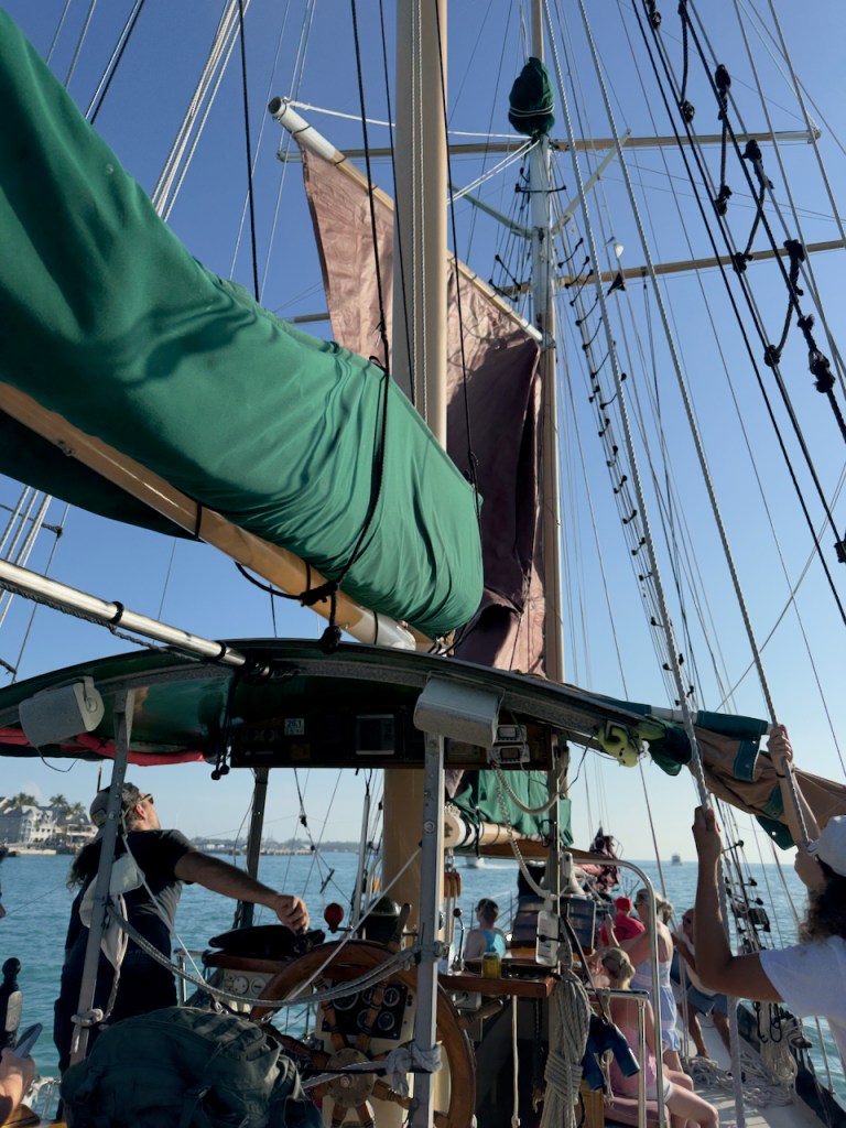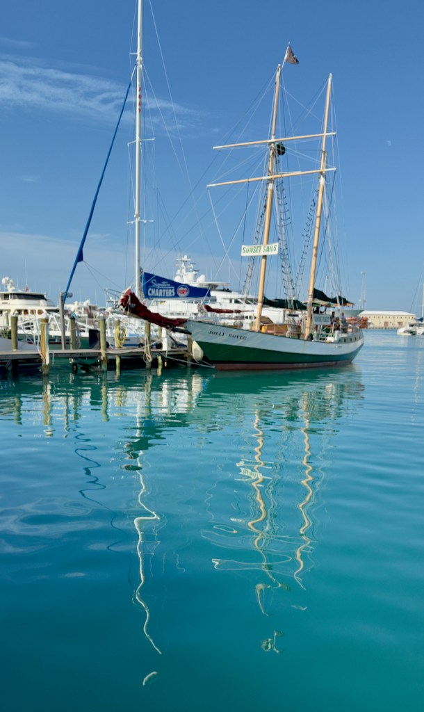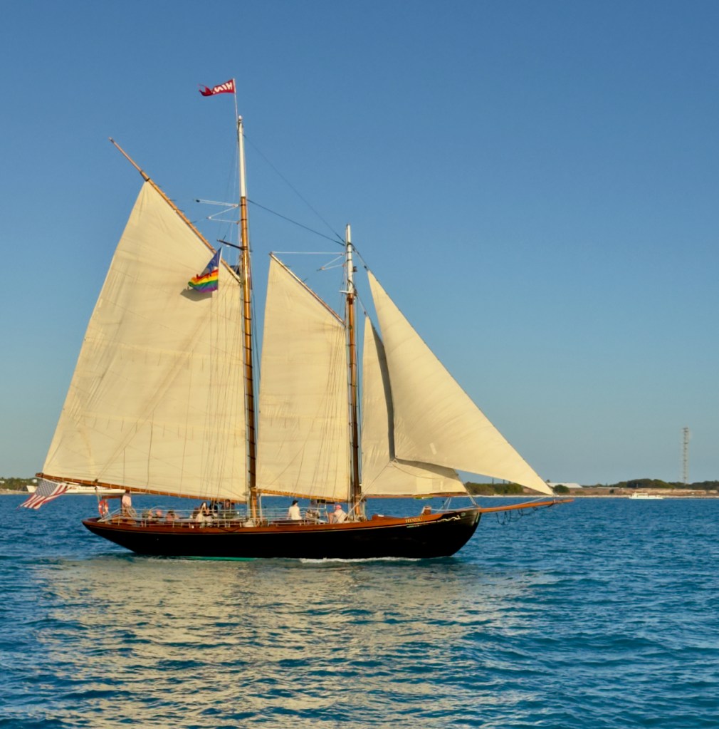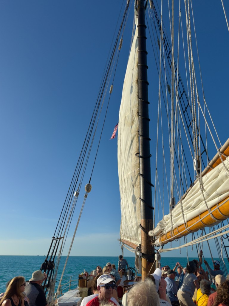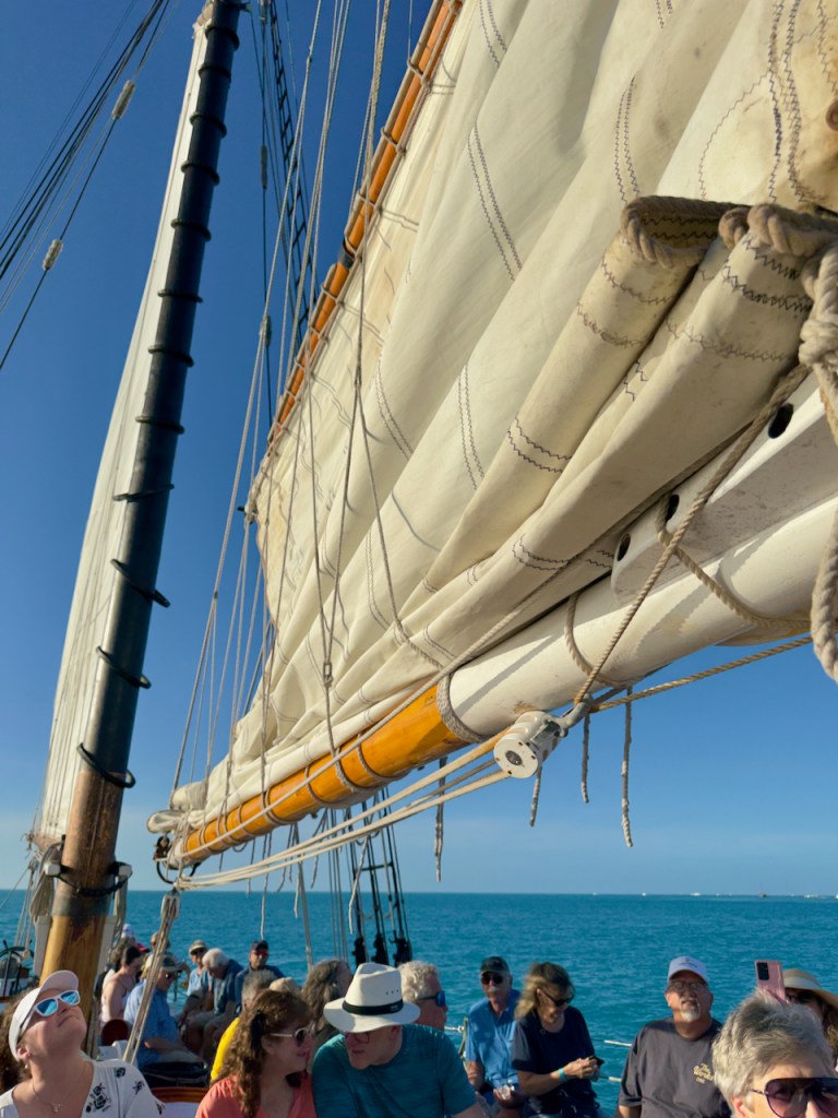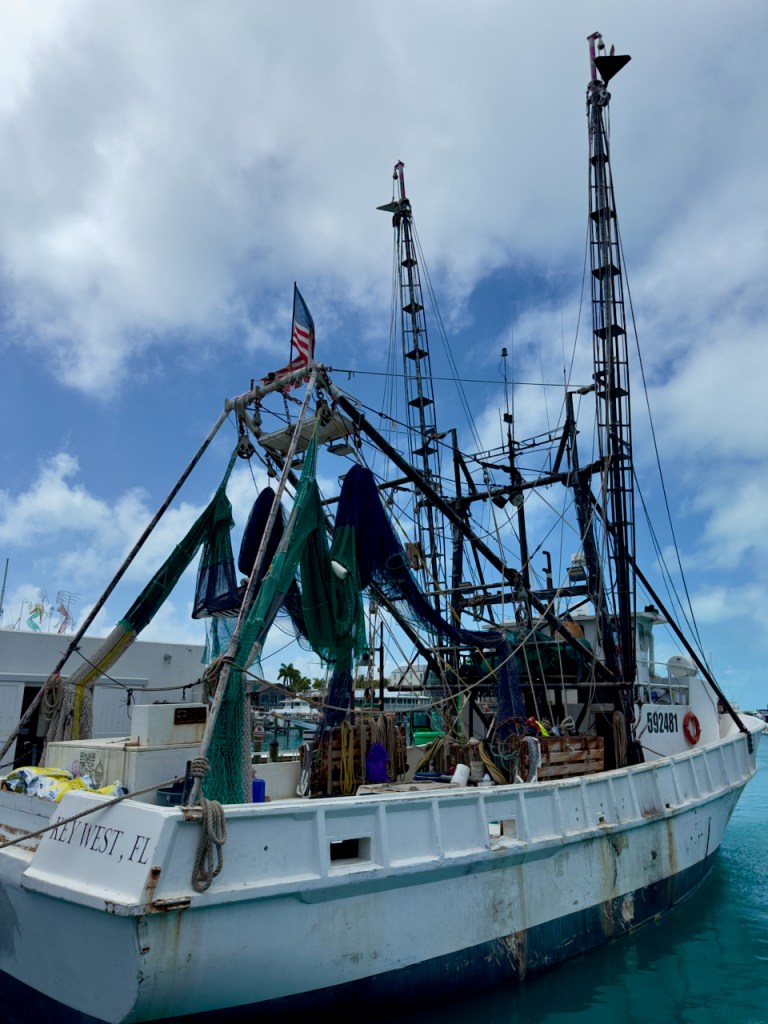 I spent some time at the Sails to Rails museum, an old railroad depot, but didn’t take many interesting photos. It featured the building of a railroad from the mainland out to the Keys which is now a 100 mile road. Then I hung out at the Schooner Wharf Bar until it was time to go sunset sailing on the Appledore Schooner. This is a shrimp boat.