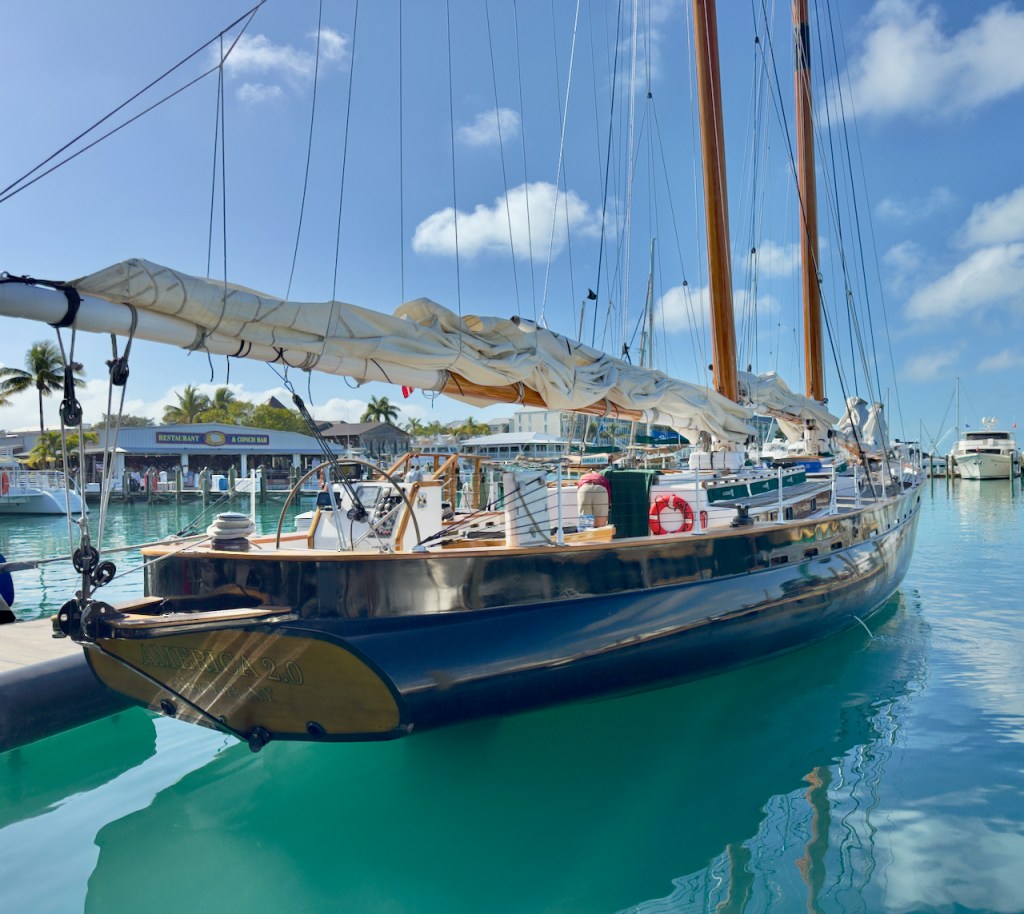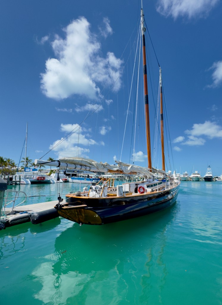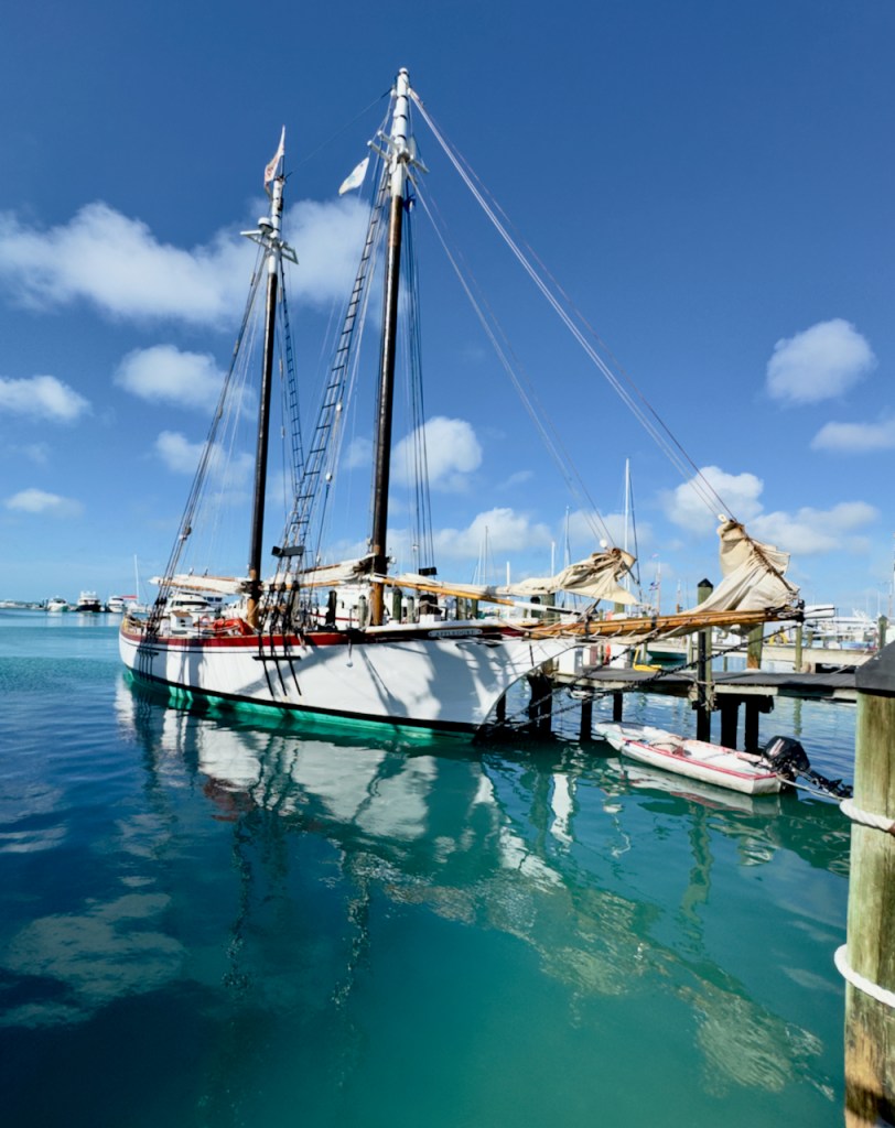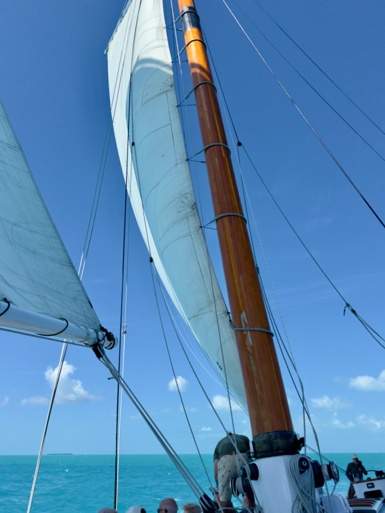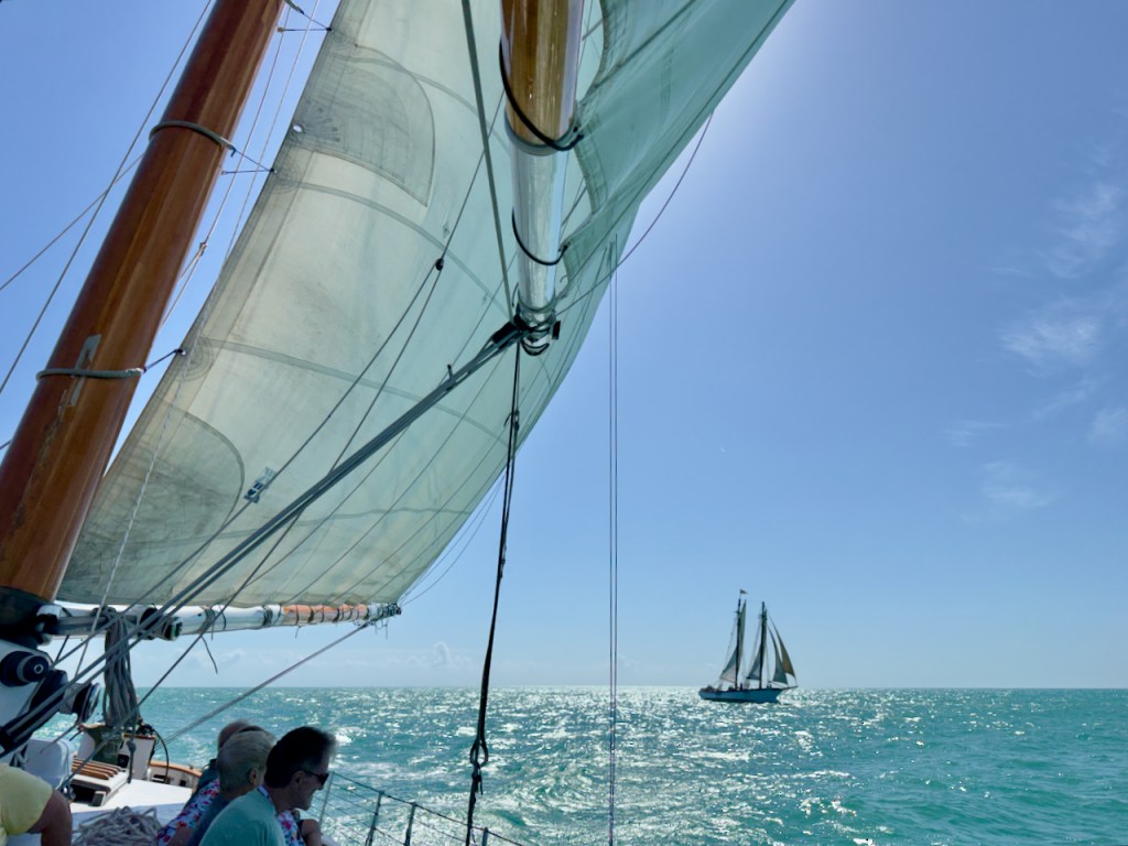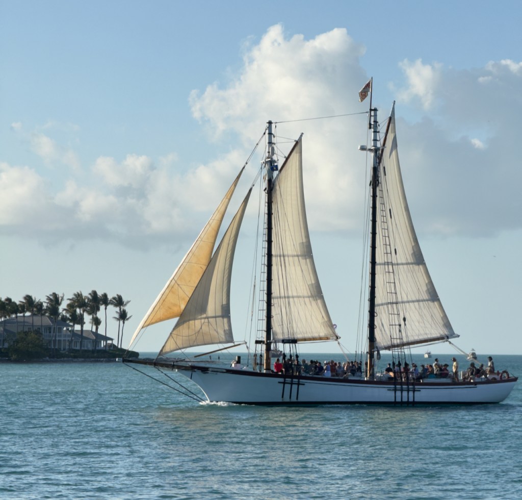 I spent some time at the Sails to Rails museum, an old railroad depot, but didn’t take many interesting photos. It featured the building of a railroad from the mainland out to the Keys which is now a 100 mile road. Then I hung out at the Schooner Wharf Bar until it was time to go sunset sailing on the Appledore Schooner. This is a shrimp boat.