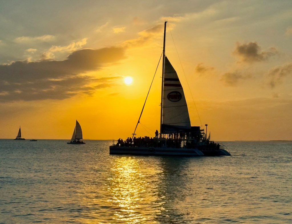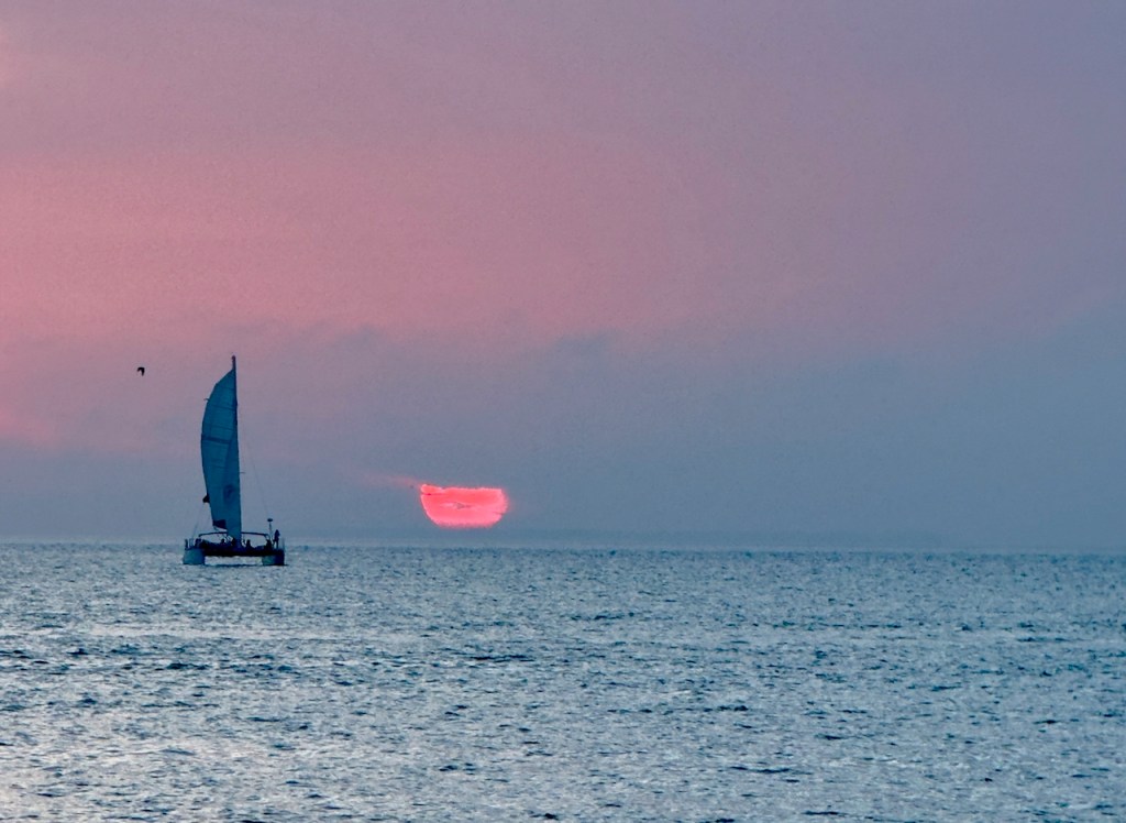 As a result of the low winds there were not many sail boats nearby at sunset.